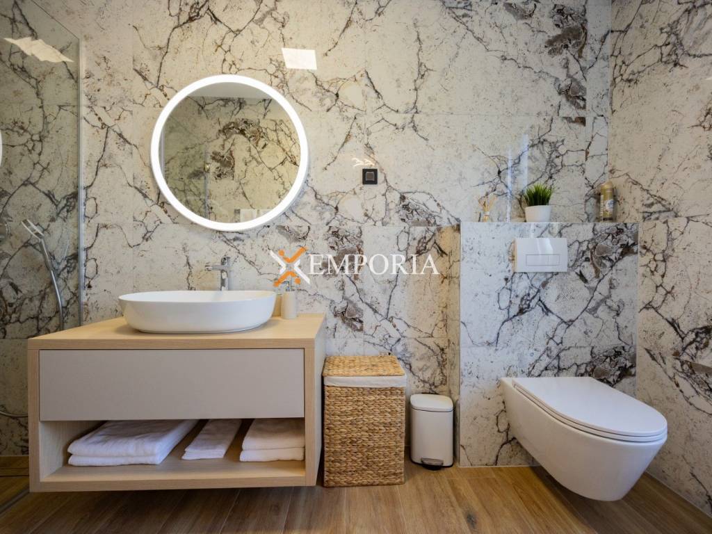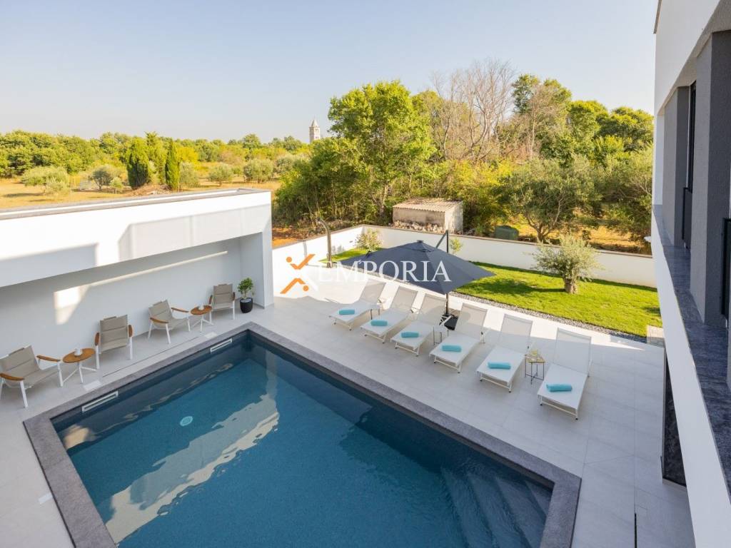 A new modern house with two swimming pools and a summer kitchen is for sale in Zaton. It is a new building.