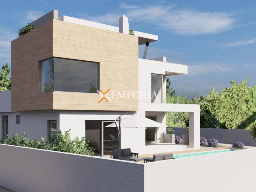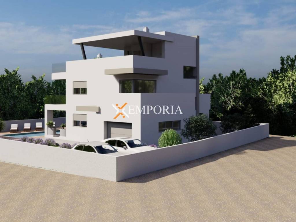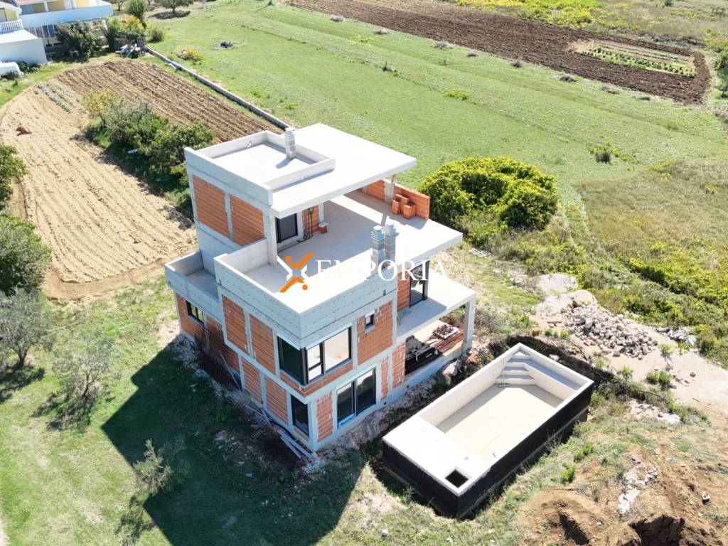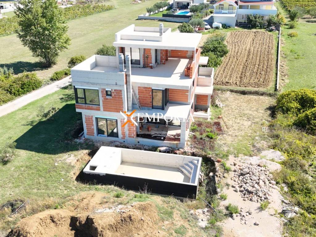 A house with a swimming pool in Ljubač is for sale. At the moment it is possible to buy the house under construction, built up in brick – unfinished for the price given in the advertisement. The house is only 140 m away from the sea. The house offers an excellent view of the sea.