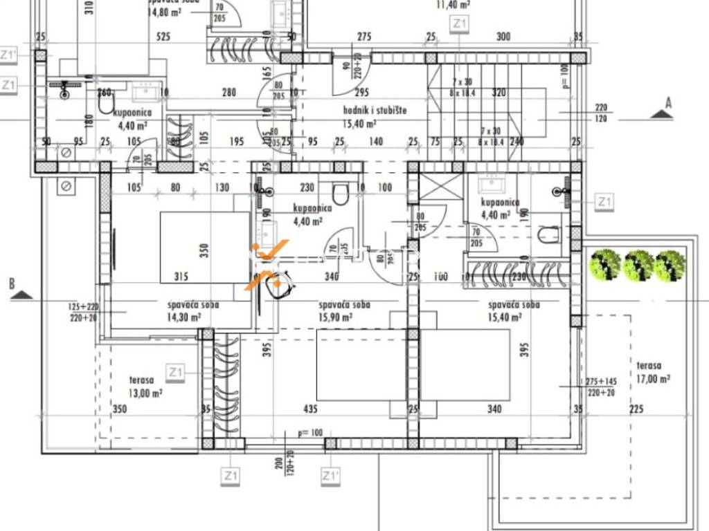 Facade thermal insulation 10 cm Styrofoam. Windows made of PVC material with three-layer glass, electric shutters and mosquito nets. Underfloor heating throughout the house via heat pumps. Air conditioners in the living room and all bedrooms. Furthermore, a chimney and a fireplace in the living room. In addition, a barbecue on the roof terrace.