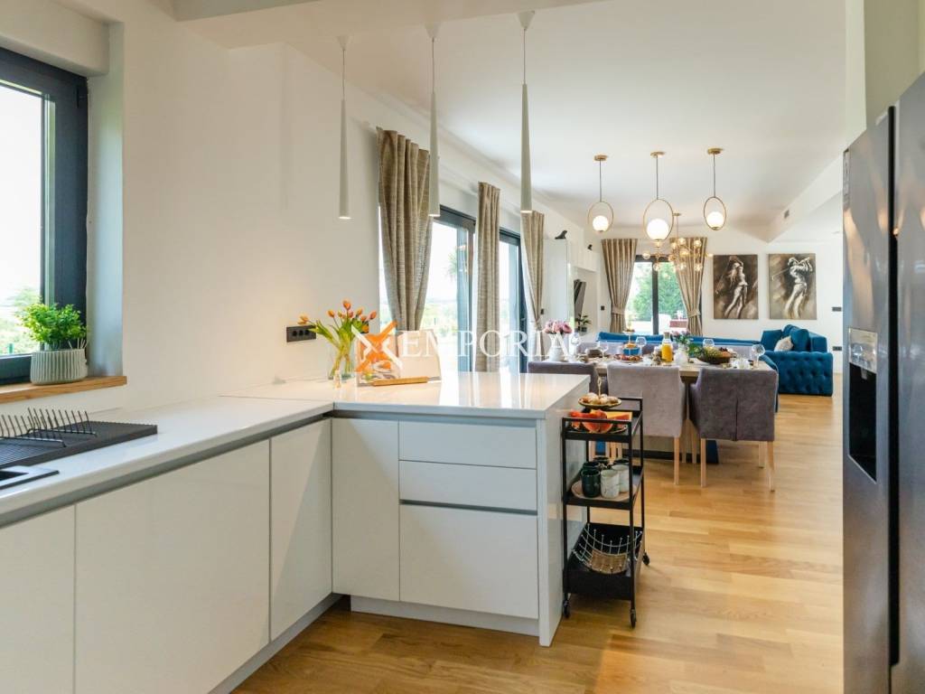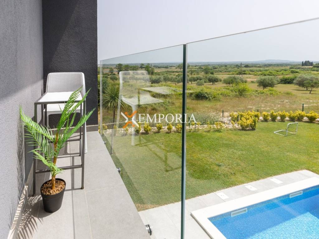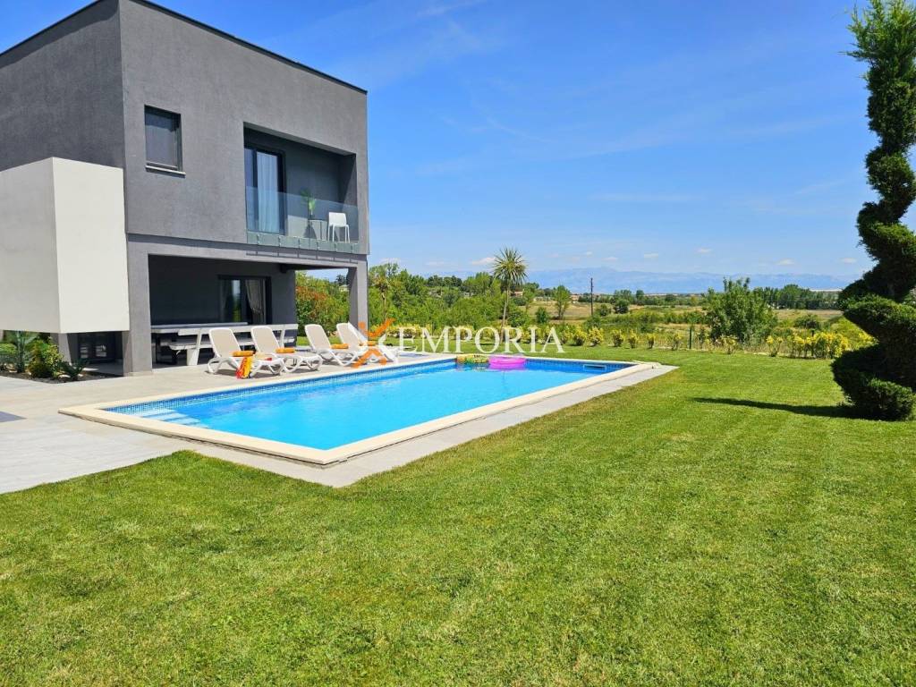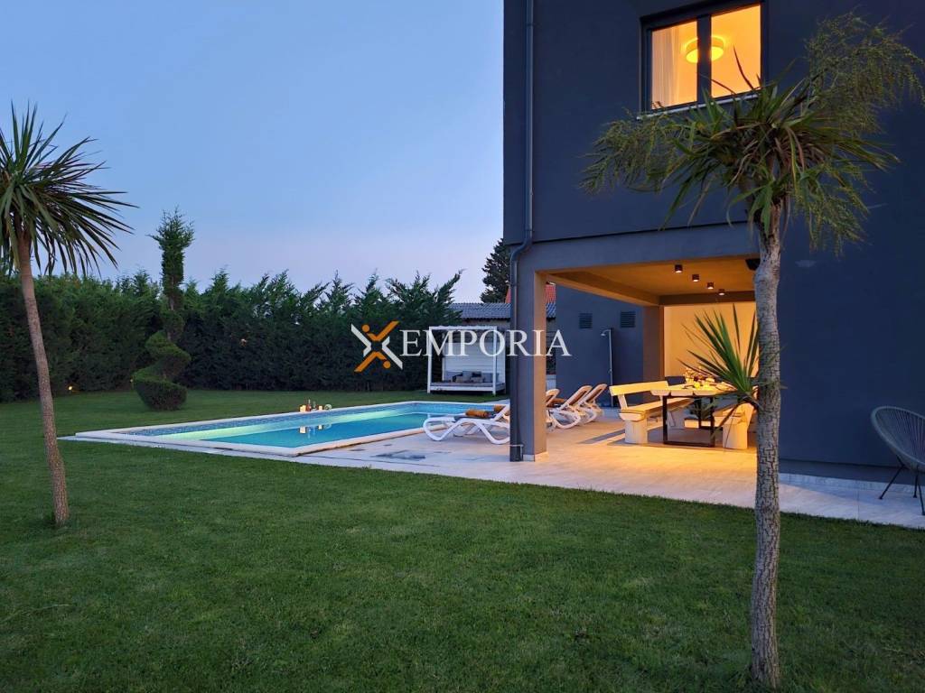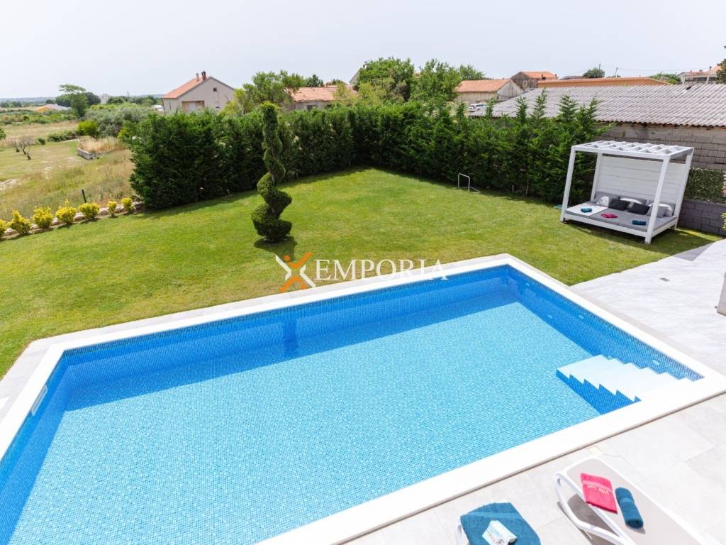 A beautiful house with a swimming pool is for sale. It is a modern new building in Zemunik Donji.