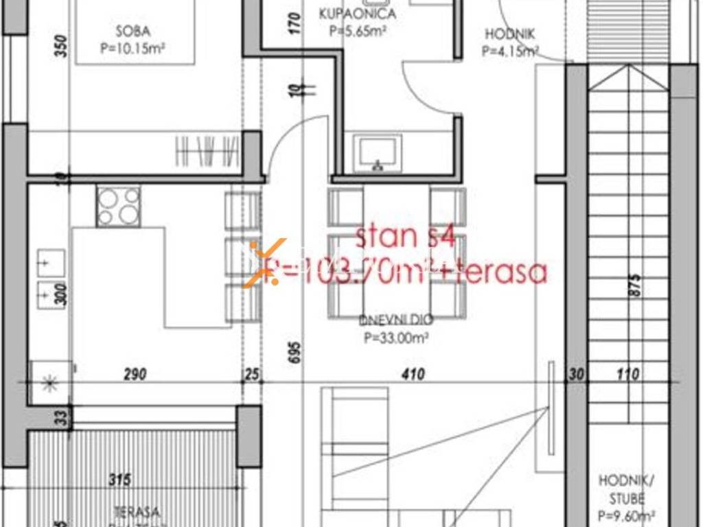In addition, the apartment has three outdoor parking spaces. The total net area of the apartment with additional parts is 152,48 m2.