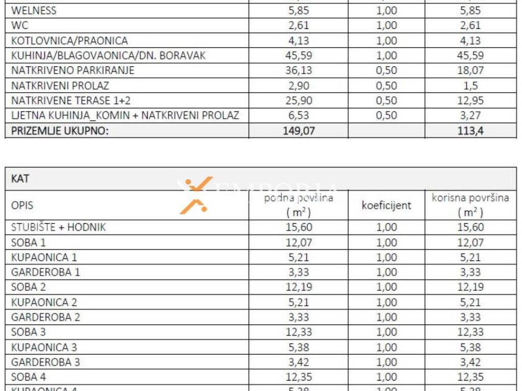 The total net usable area of this unit of a semi-detached house with the associated parts is 304,06 m2. It was built on a plot of land of 517 m2.