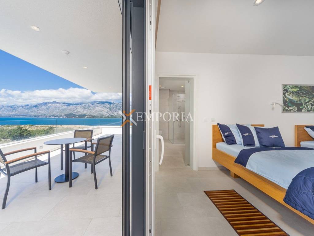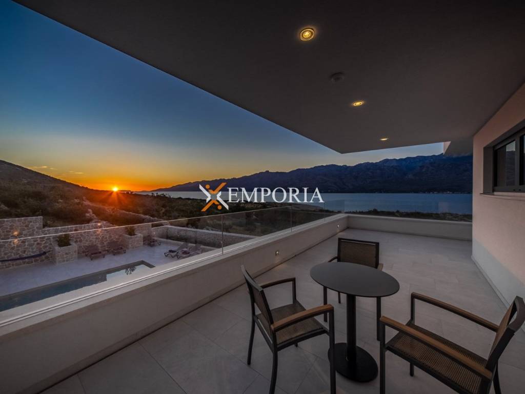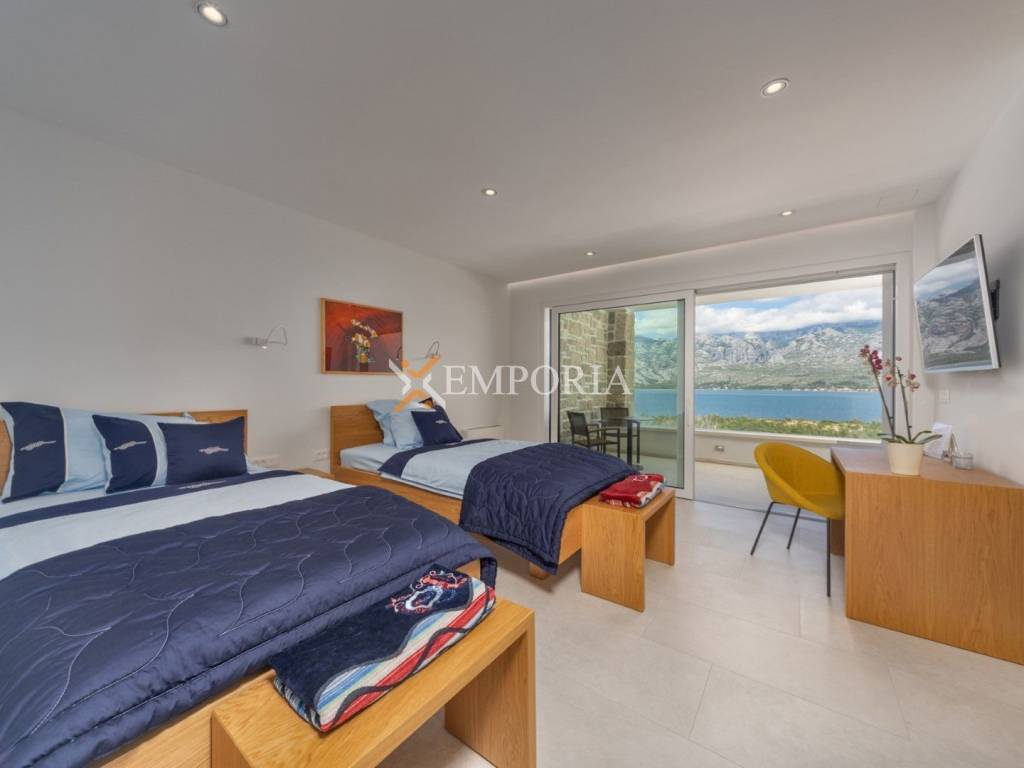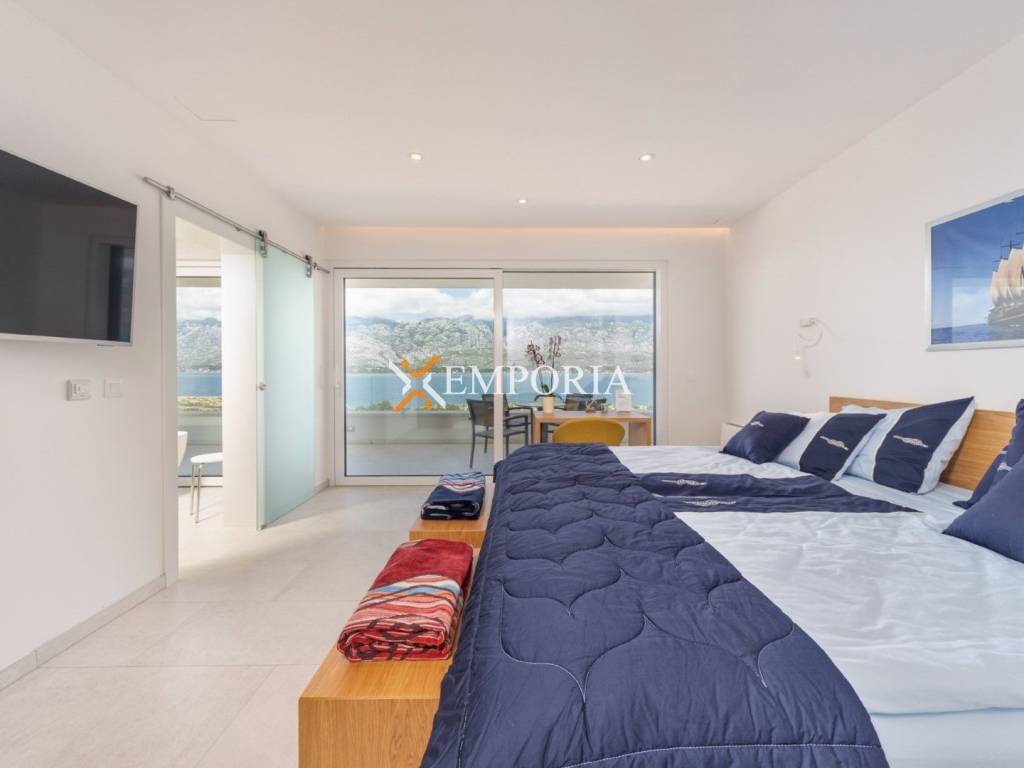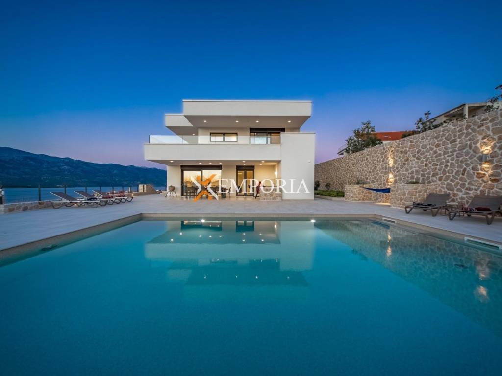 An exceptionally luxurious and modern villa with a pool and unique panoramic views of the sea is for sale. This beautiful villa is located in the idyllic and picturesque place of Vinjerac, a small coastal settlement that takes your breath away with its natural beauty and peaceful surroundings. The property is just 250 meters away from the crystal-clear sea and enchanting beaches, ideal for relaxation and enjoying the natural beauty. It is categorized with prestigious 5 stars, reflecting its top quality and exclusivity.