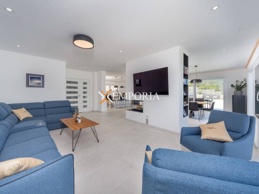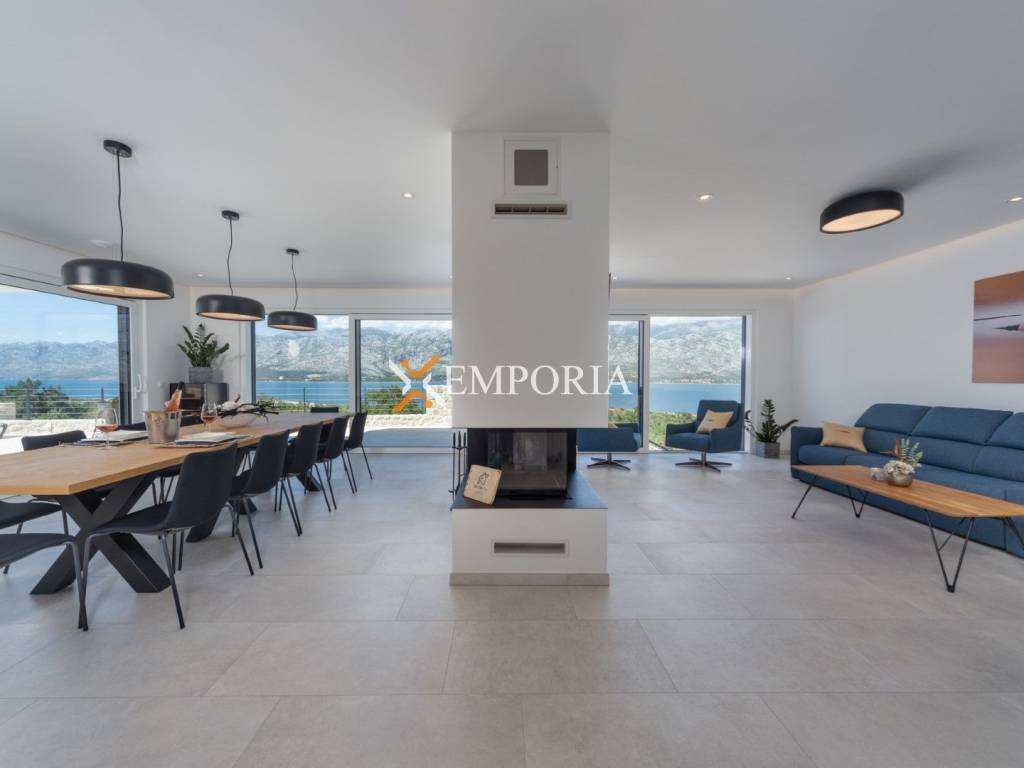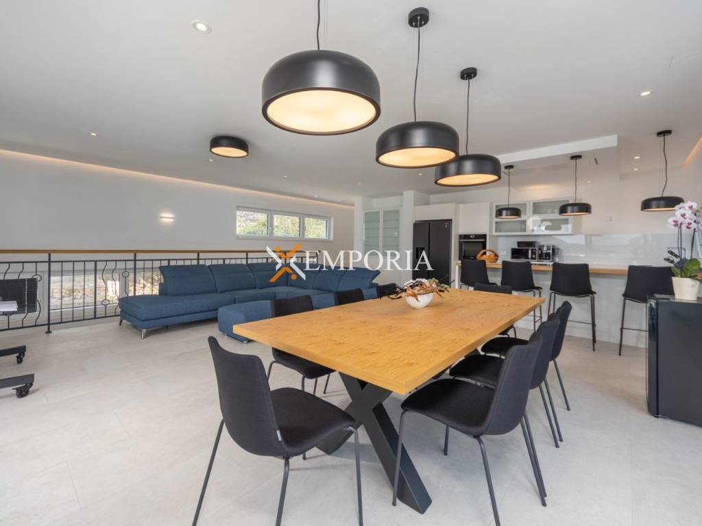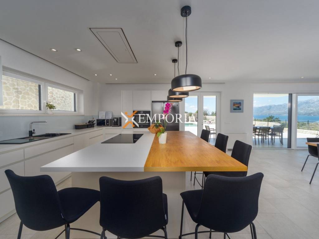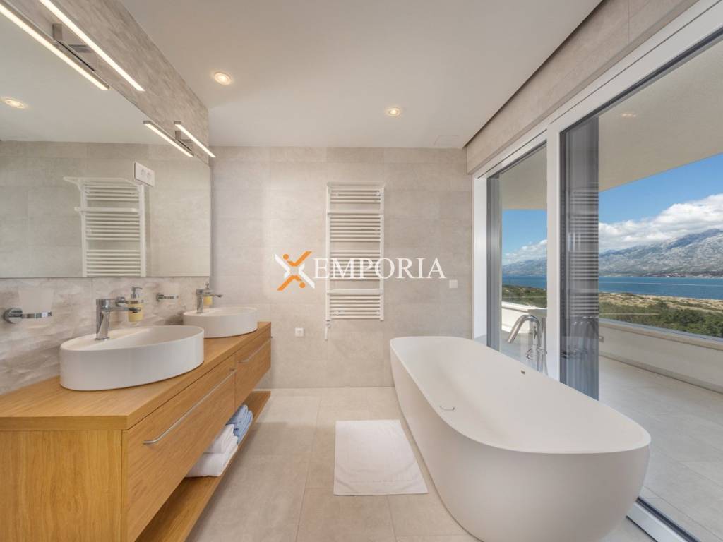An exceptionally luxurious and modern villa with a pool and unique panoramic views of the sea is for sale. This beautiful villa is located in the idyllic and picturesque place of Vinjerac, a small coastal settlement that takes your breath away with its natural beauty and peaceful surroundings. The property is just 250 meters away from the crystal-clear sea and enchanting beaches, ideal for relaxation and enjoying the natural beauty. It is categorized with prestigious 5 stars, reflecting its top quality and exclusivity.