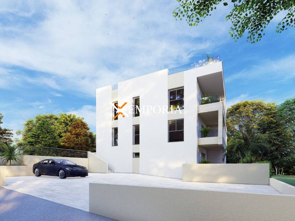 An attractive penthouse in a new development is for sale in the Bili Brig neighborhood of Zadar. Located on the 2nd floor of a residential building, this apartment includes a private rooftop terrace with a sea view, a storage room, and two parking spaces. The property is 2,6 km from the sea and 2,8 km from the city center.