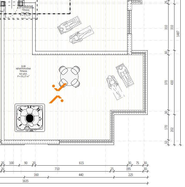 The rooftop terrace will have an electricity connection and hot and cold water supply for a jacuzzi.