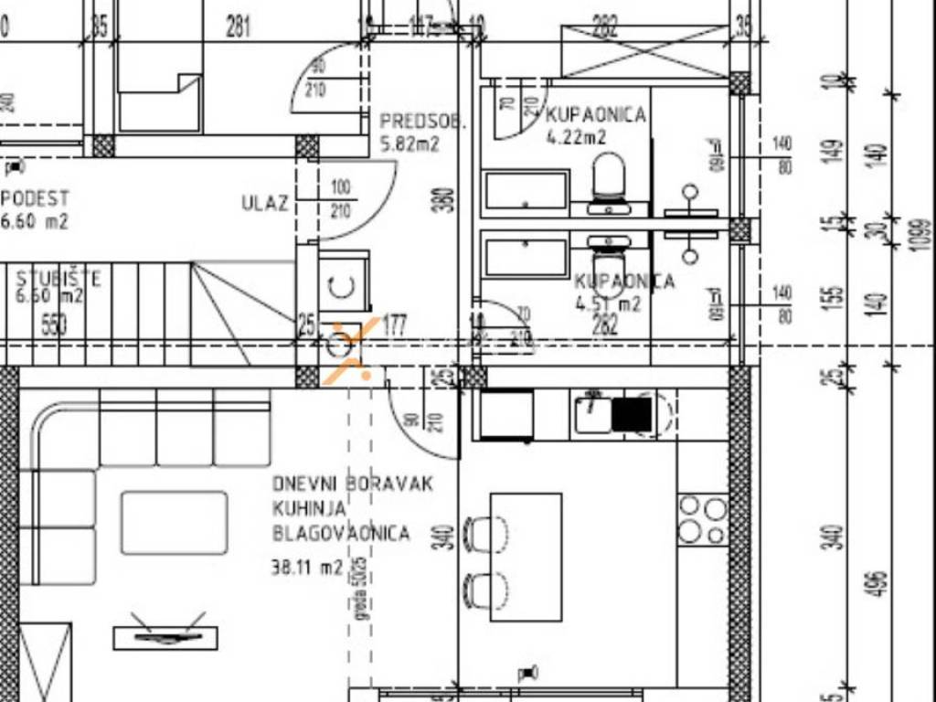 For sale is a modern apartment in Pakoštane, located only 520 m from the sea and 650 m from the town center. It is situated on the first floor of a new building scheduled for completion in 2026. The total net area including additional spaces is 88,47 m², while the living area itself covers 85,97 m². A peaceful location adds special value to this property.