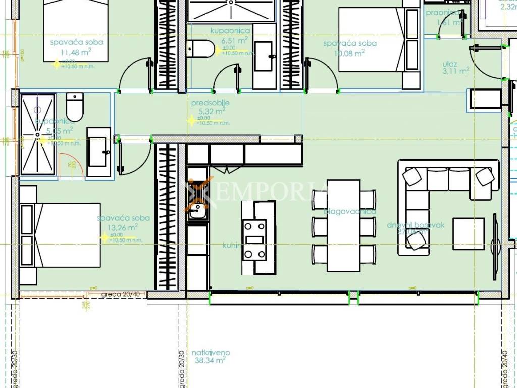 Четырехкомнатная квартира новое, нулевой этаж, Sveti Filip i Jakov