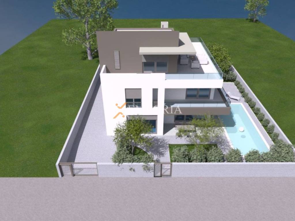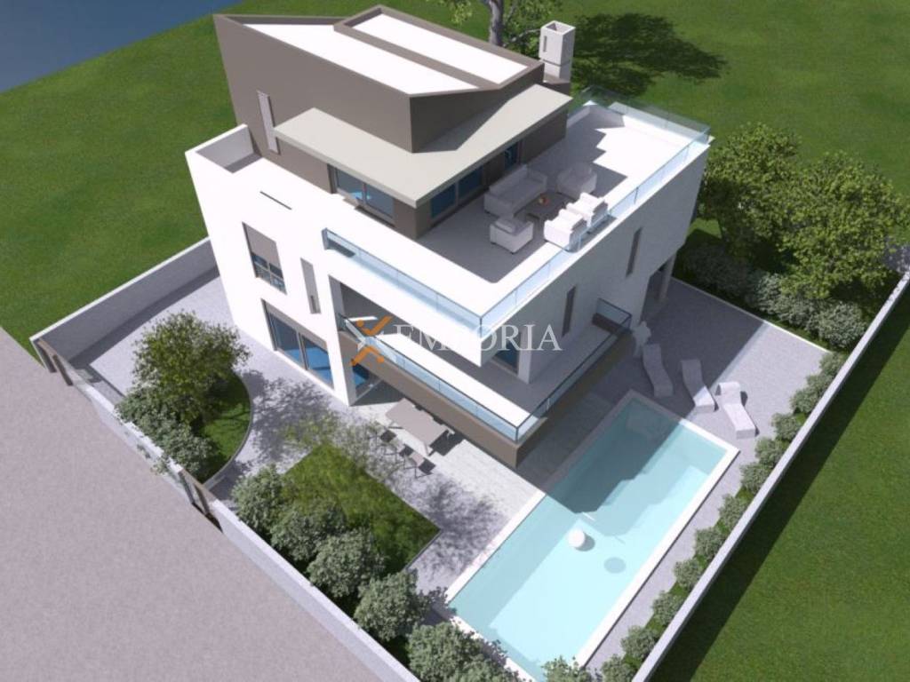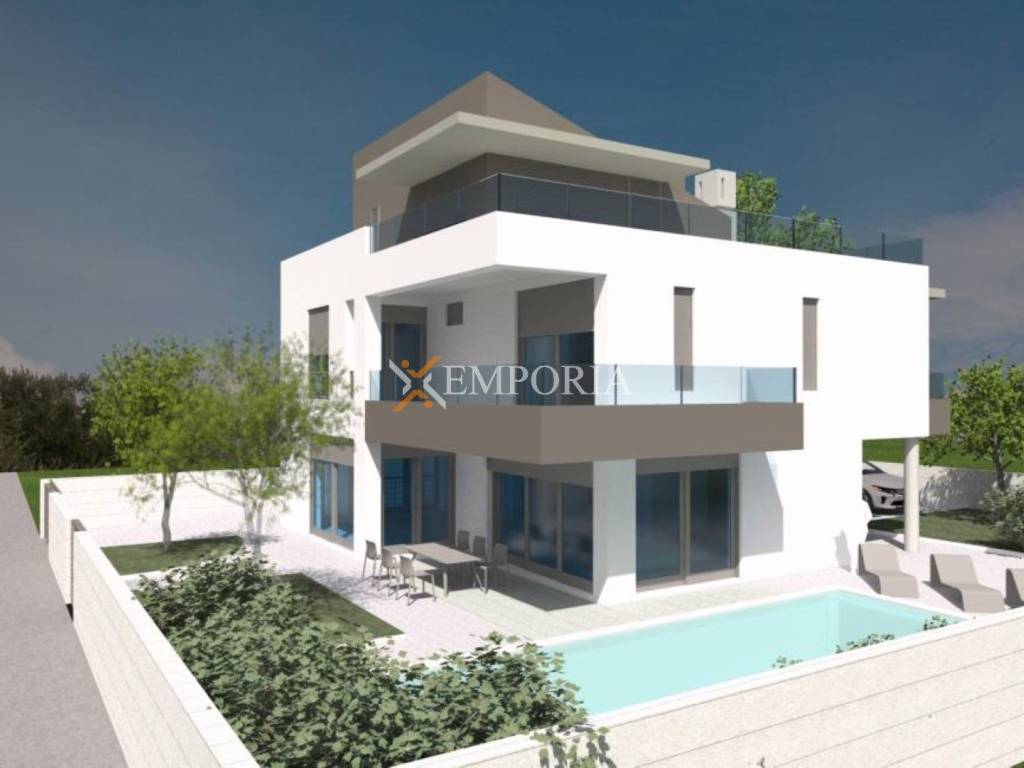 Zaton luxury new-build house with pool, 210 m from the sea