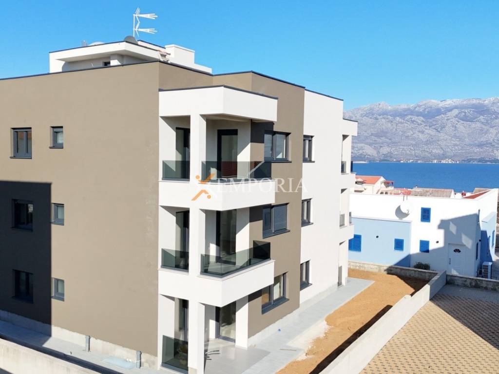 For sale is an apartment in a new residential building located in Ražanac, in an excellent position only 320 m from the sea and 320 m from the town center. The property offers an excellent sea view, especially from the spacious rooftop terrace, which significantly increases its residential and investment value.