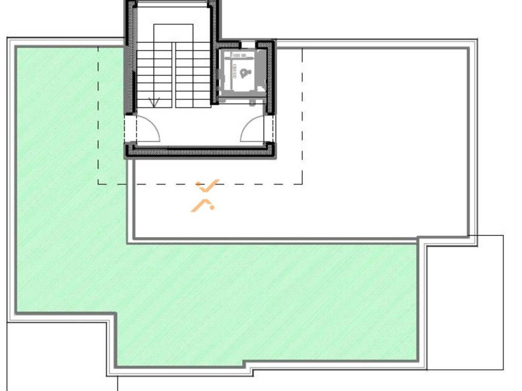 The apartment is located on the second floor of a modern building with a lift that connects the basement to the rooftop terraces. The layout includes an entrance hall, two bedrooms, a bathroom, and a kitchen with dining area and living room with access to a covered terrace. The net surface area of the interior living space with the covered terrace amounts to 53,08 m². From the staircase, there is access to a private rooftop terrace with a total surface of 61 m², of which 3,50 m² is covered, providing an exceptional outdoor living area. The net usable area of the described spaces amounts to 69,21 m².