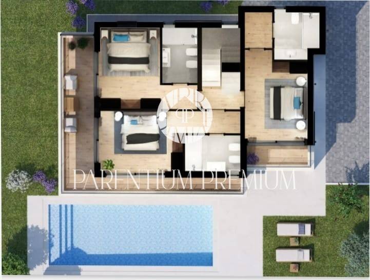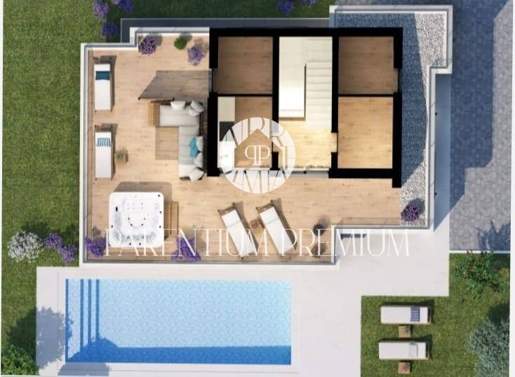 For sale is a modern villa located in a quiet area, just 3 km from the center of Poreč, with a total gross area of 325 m and net living space of 220 m, situated on a 501 m plot.