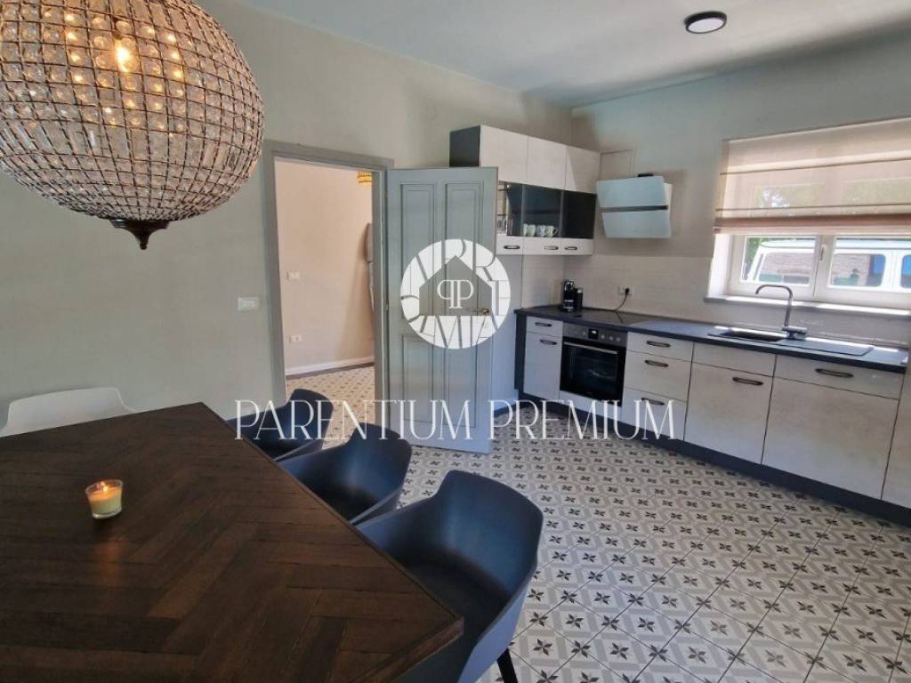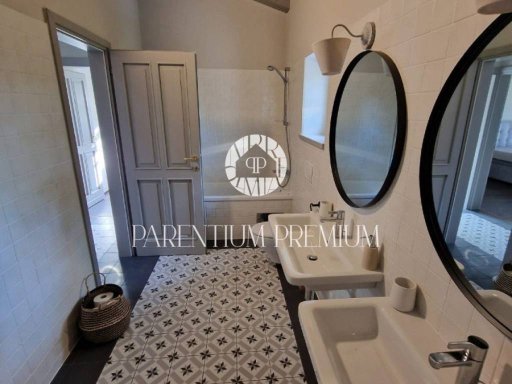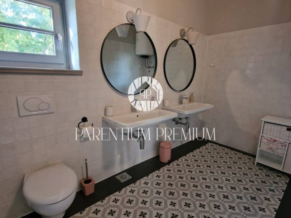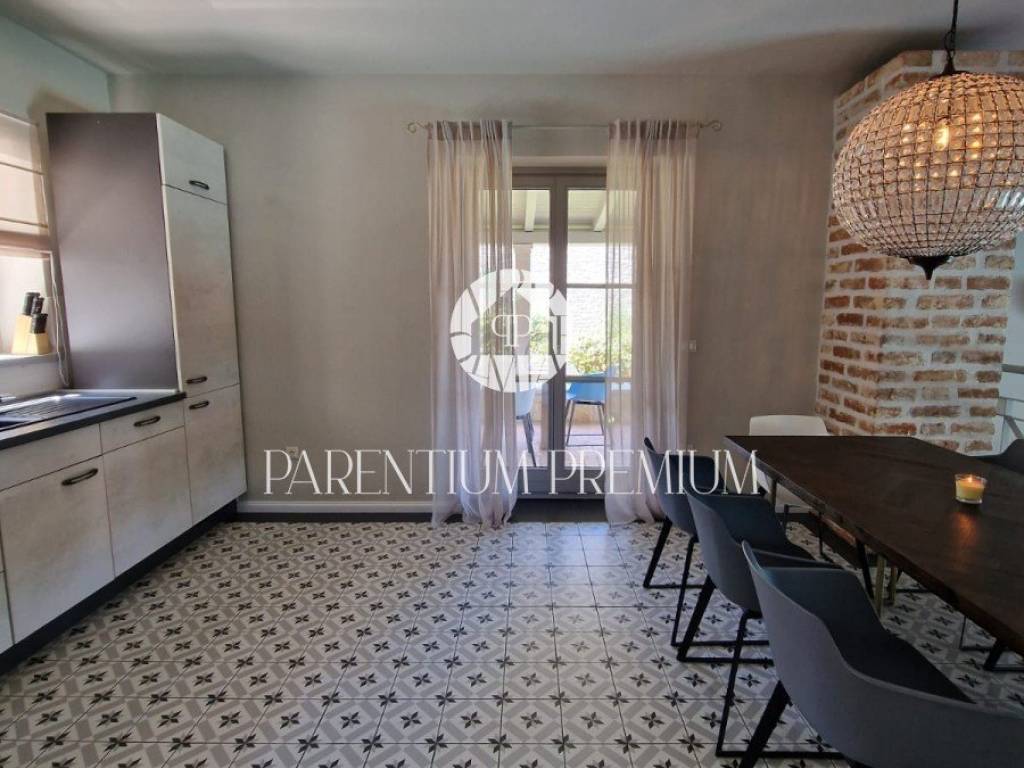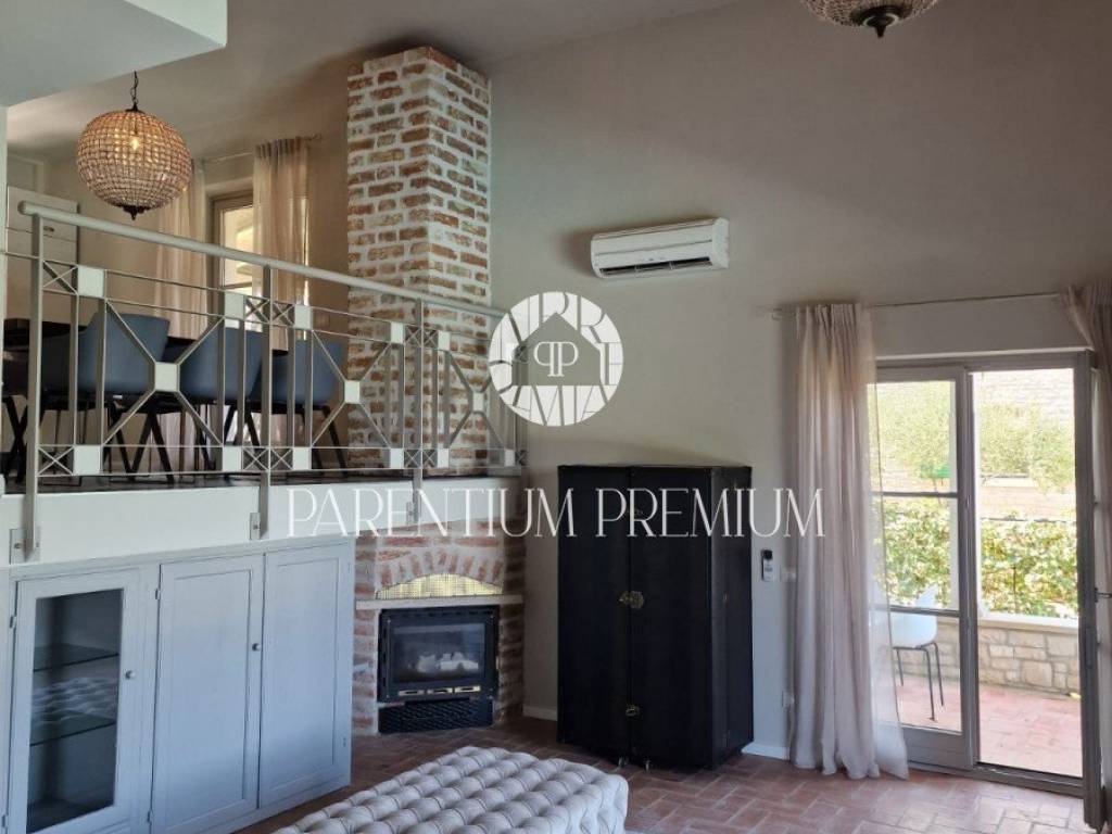 This beautiful rustic villa with a beautiful view of the sea and nature is located in a small Istrian village in the immediate vicinity of Poreč. The view is unobstructed because the villa is located on elevated ground and the land in front of it is not for construction, which guarantees great privacy for the future owner. The villa has an area of 185 m2 and is spread over a plot of 780 m2 and has a pool of 45 m2. It has three floors. Upon entering the villa, we come to a kitchen with a dining room, which opens onto a terrace with a wonderful view of nature and the sea. On the same floor there is a bedroom with a bathroom. We go down the stairs to the ground floor, where there is a living room with large windows that bring in a lot of light, from the living room there is the same courtyard. On the first floor there are four rooms and three bathrooms.