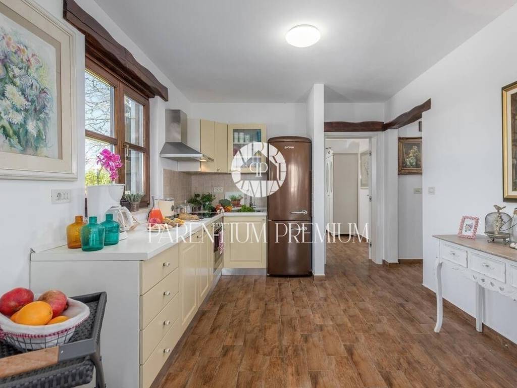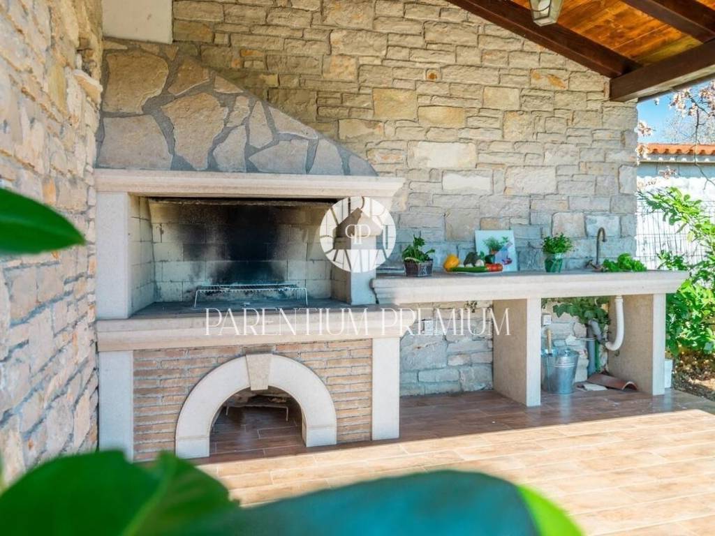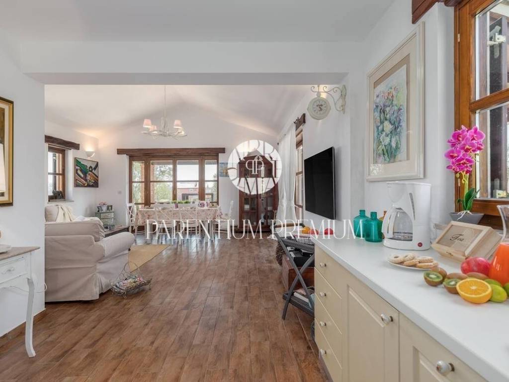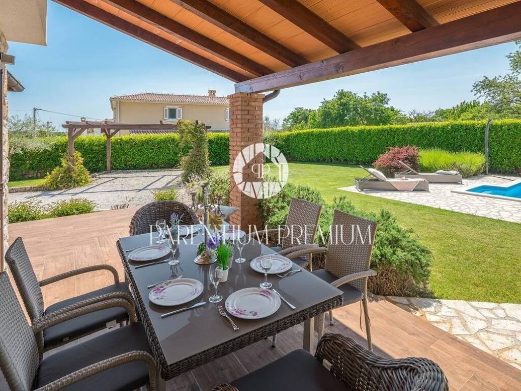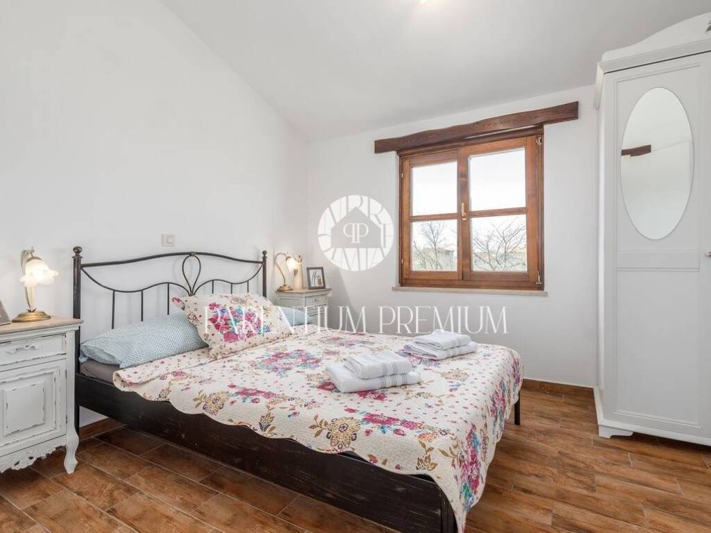 On a plot of land of 788 m2, this beautiful house of 144 m2 is located. It spreads over two floors and consists of a ground floor consisting of an entrance hall, storage room, one bedroom, guest toilet, living room, kitchen and dining room in an open space concept, with access to two covered terraces. On the first floor there are two bedrooms and one bathroom. The house is adorned with a beautifully landscaped and fully fenced garden with Mediterranean plants that makes staying in it an oasis for enjoyment. There is a separate summer kitchen in the courtyard, while for relaxation in the summer days there is a swimming pool with a sunbathing area. The house is heated and cooled by air conditioning in each room. Parking spaces are located in front of the house. The house is sold fully furnished. This house is an ideal solution for housing or as an investment for tourist purposes.