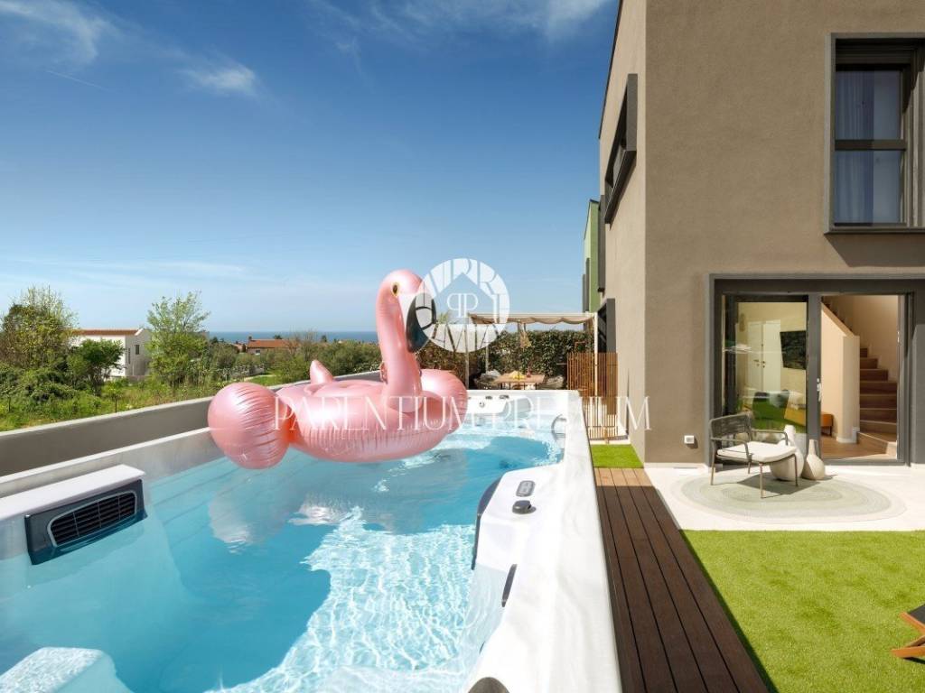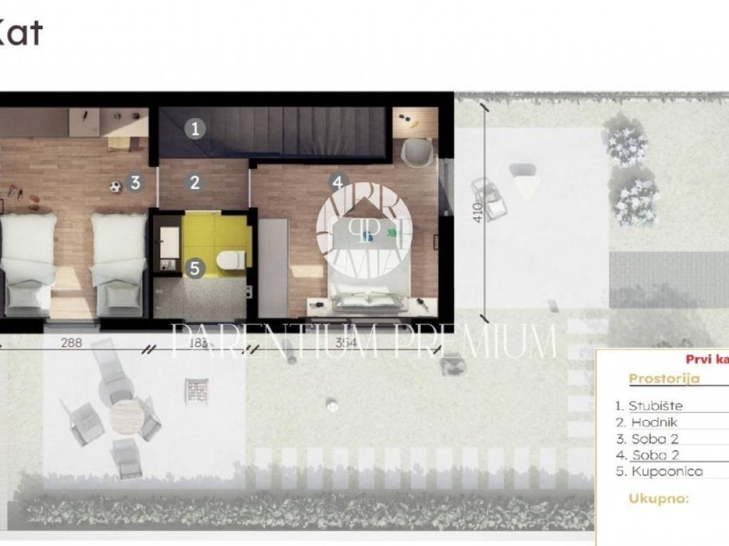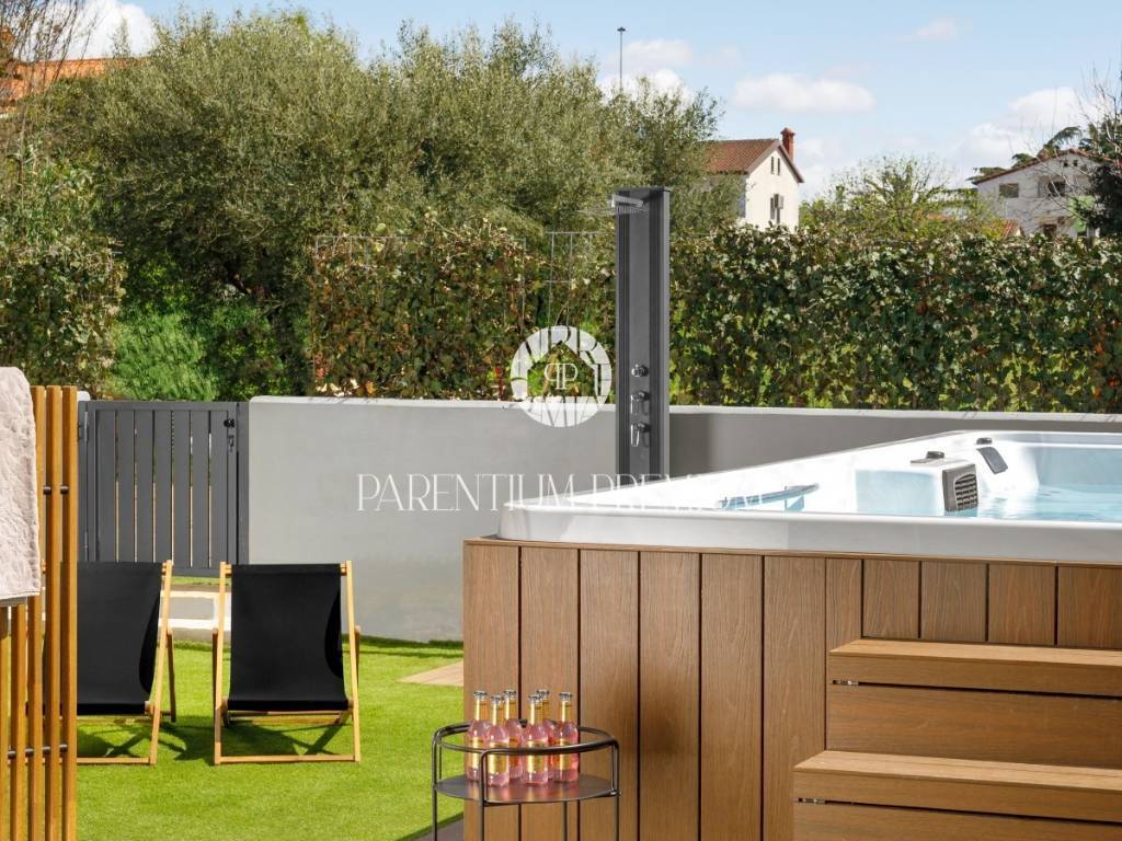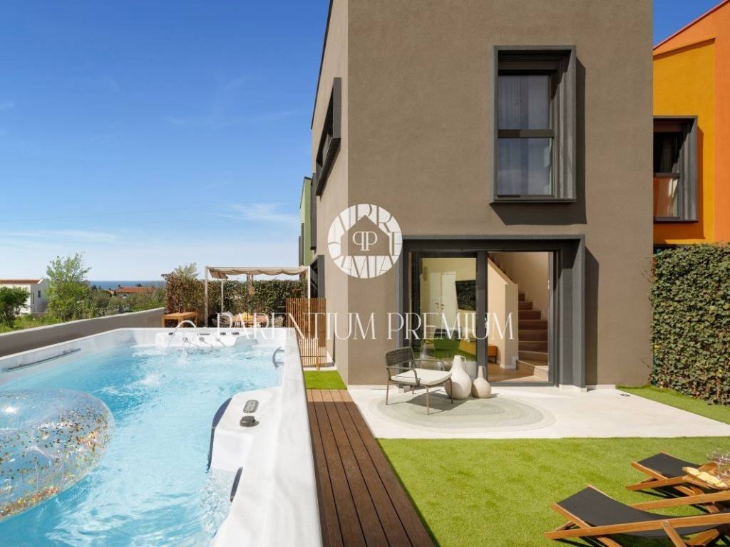 Terraced house for sale with 92m2 yard 900m from the sea. The house is spread over 3 floors, basement, ground floor and first floor. On the ground floor there is a spacious living room with kitchen and dining room with access to the yard where there is a pergola with a relaxation area. The staircase leads to the first floor, where there is one bathroom and two bedrooms. The plan was to have a wine cellar/tavern with a toilet in the basement, but it can be converted into a bedroom. The house has electric underfloor heating, and each room has multi-split units for cooling and heating. In the fenced yard there is also a Jacuzzi/swimming pool. The house has 2 parking spaces. The house is decorated with high-quality materials and is sold fully furnished. This property is an ideal solution for housing or as an investment for tourist purposes.