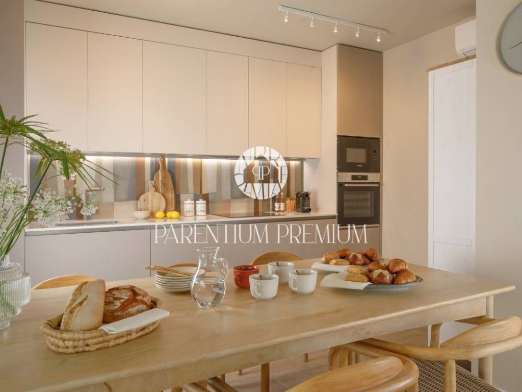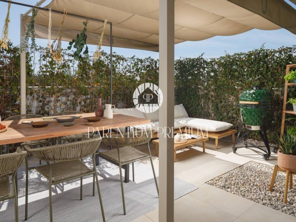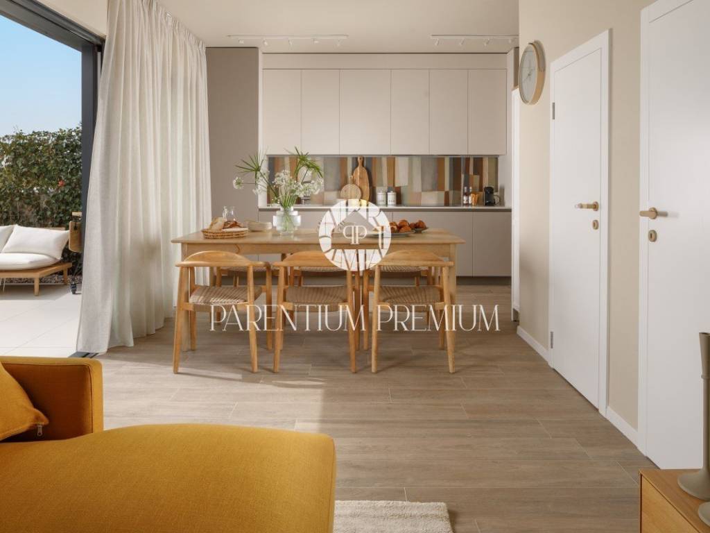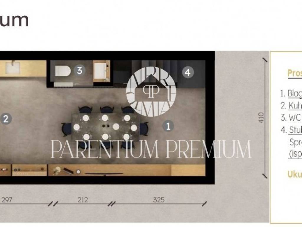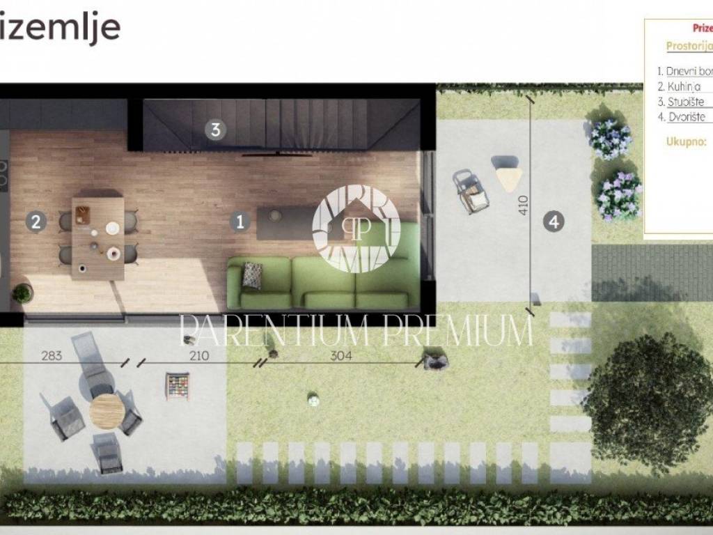 Terraced house for sale with 92m2 yard 900m from the sea. The house is spread over 3 floors, basement, ground floor and first floor. On the ground floor there is a spacious living room with kitchen and dining room with access to the yard where there is a pergola with a relaxation area. The staircase leads to the first floor, where there is one bathroom and two bedrooms. The plan was to have a wine cellar/tavern with a toilet in the basement, but it can be converted into a bedroom. The house has electric underfloor heating, and each room has multi-split units for cooling and heating. In the fenced yard there is also a Jacuzzi/swimming pool. The house has 2 parking spaces. The house is decorated with high-quality materials and is sold fully furnished. This property is an ideal solution for housing or as an investment for tourist purposes.