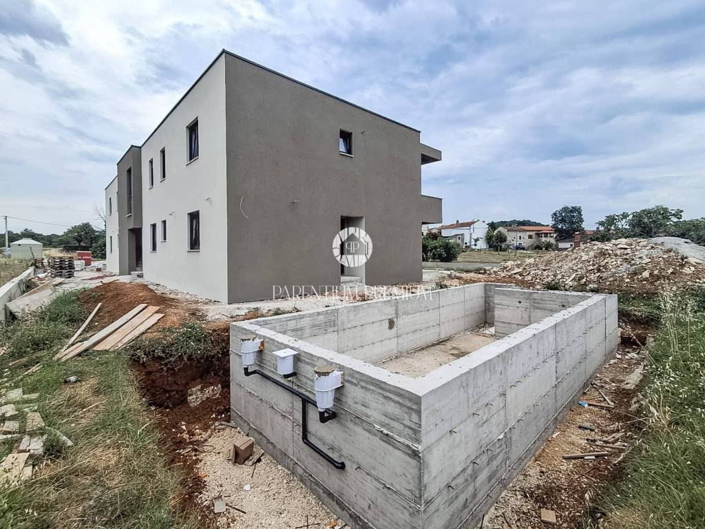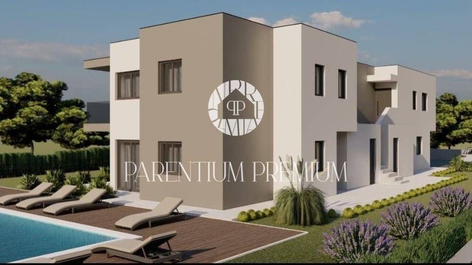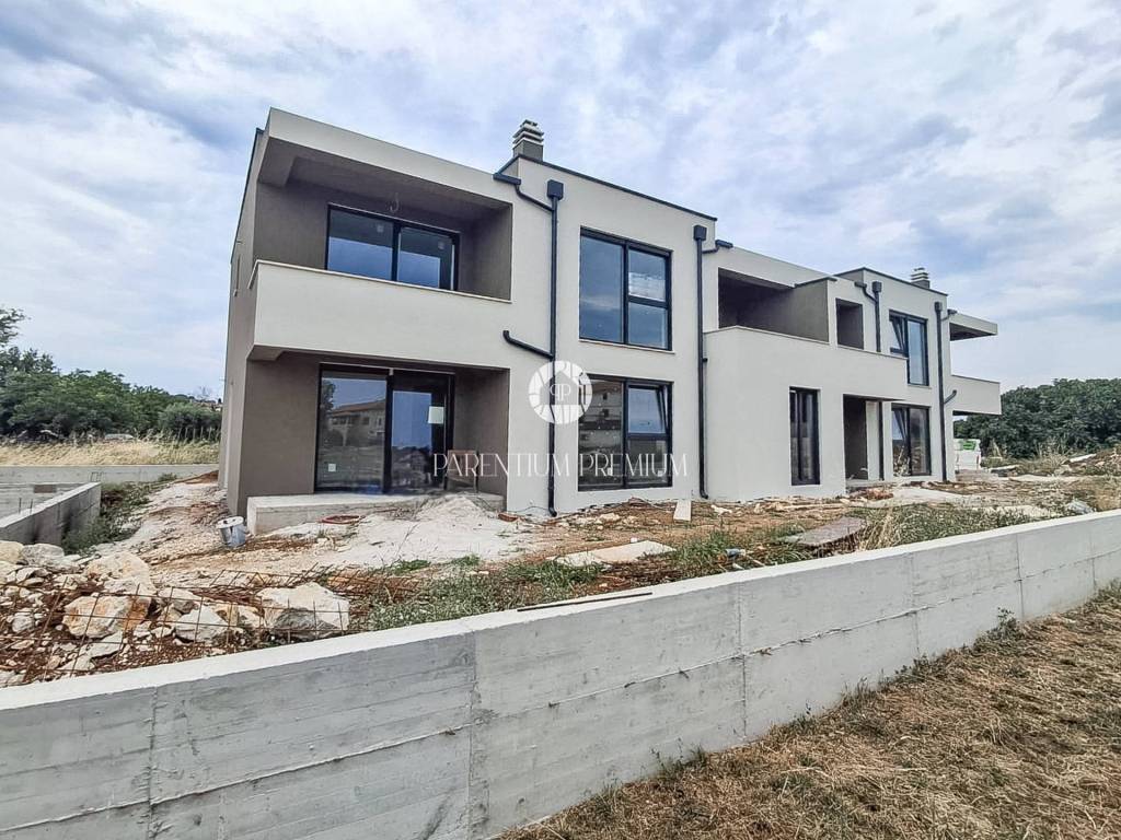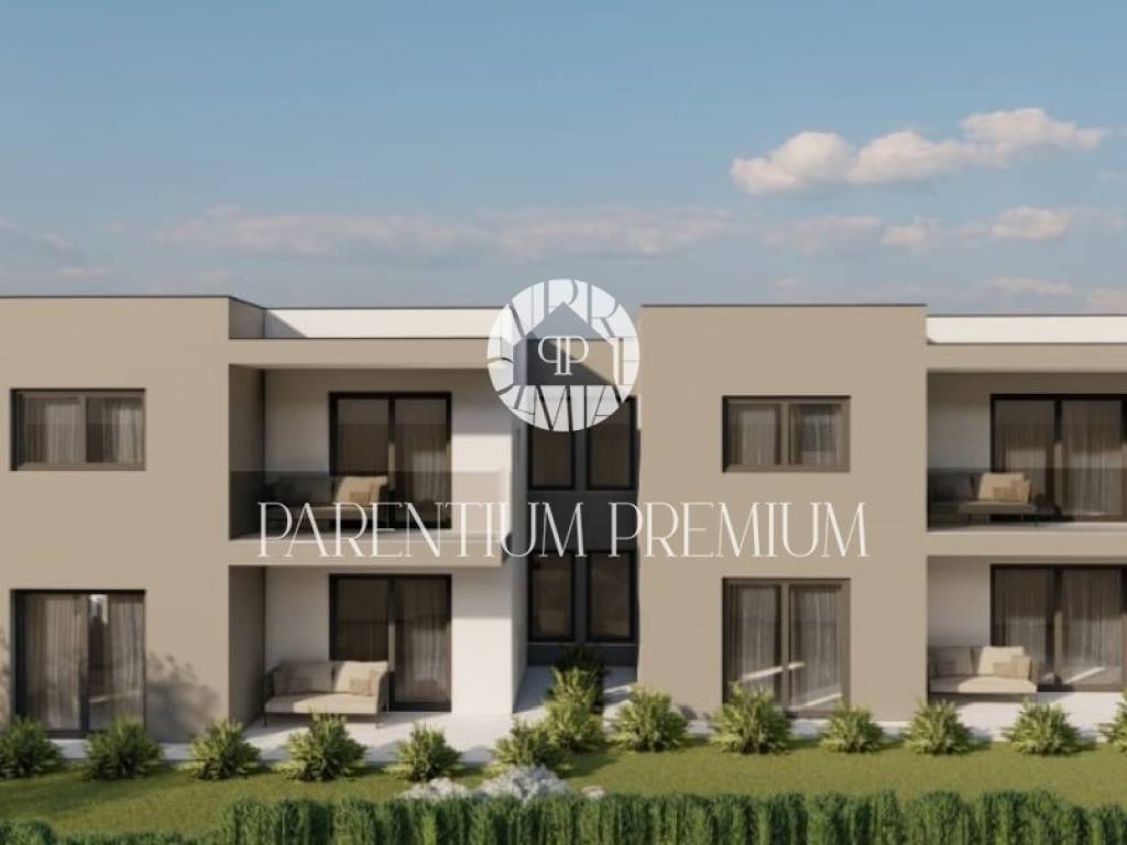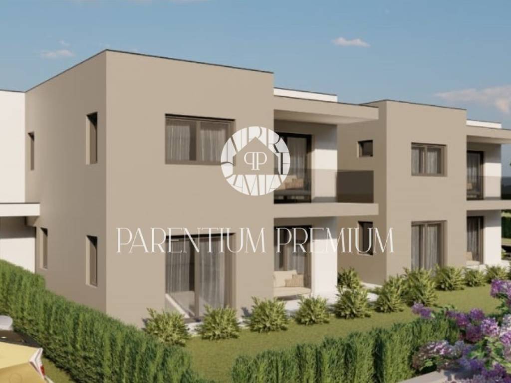 The apartment on the first floor has a total area of 93.71 m2 and consists of an entrance hall, bathroom, toilet, three bedrooms, one of which has its own bathroom, while one bedroom has its own loggia, and a spacious living room with kitchen and dining room in an open space concept with access to a covered terrace.
