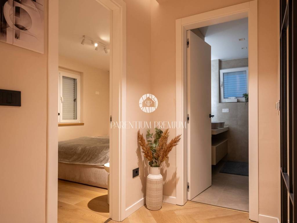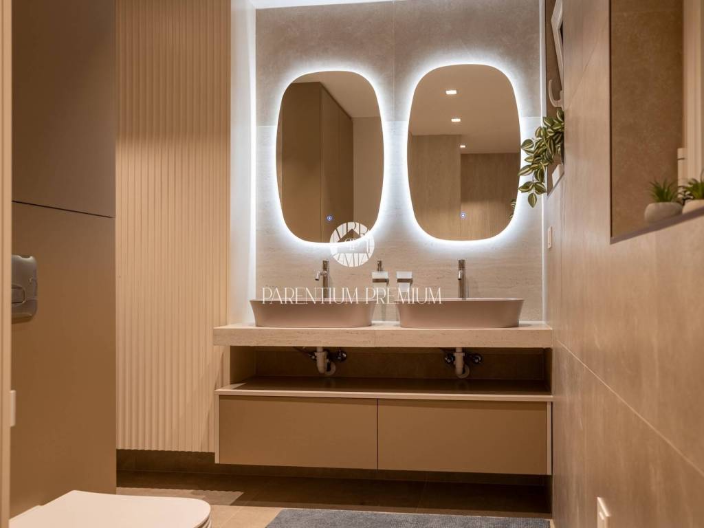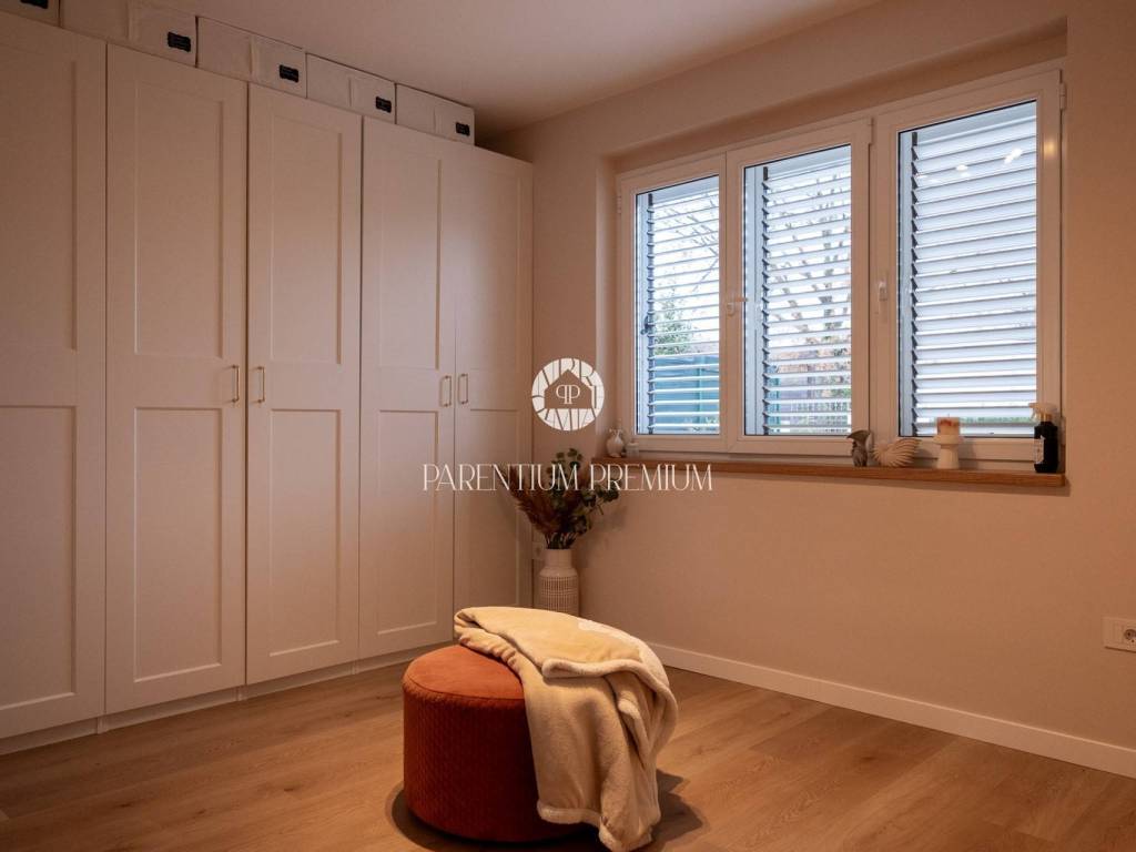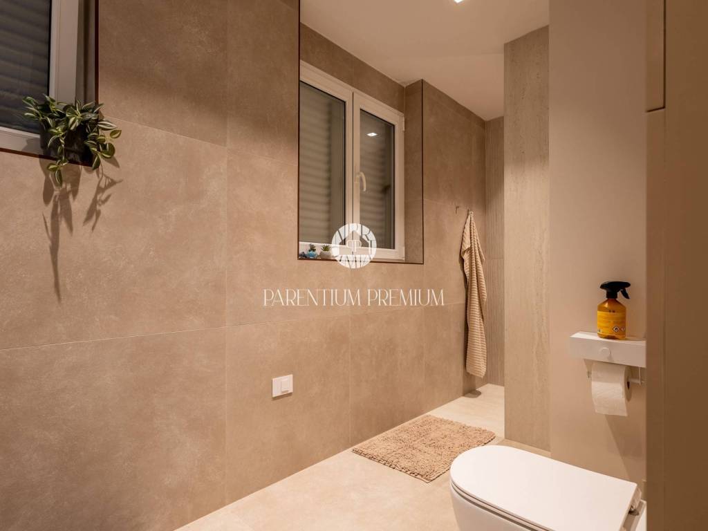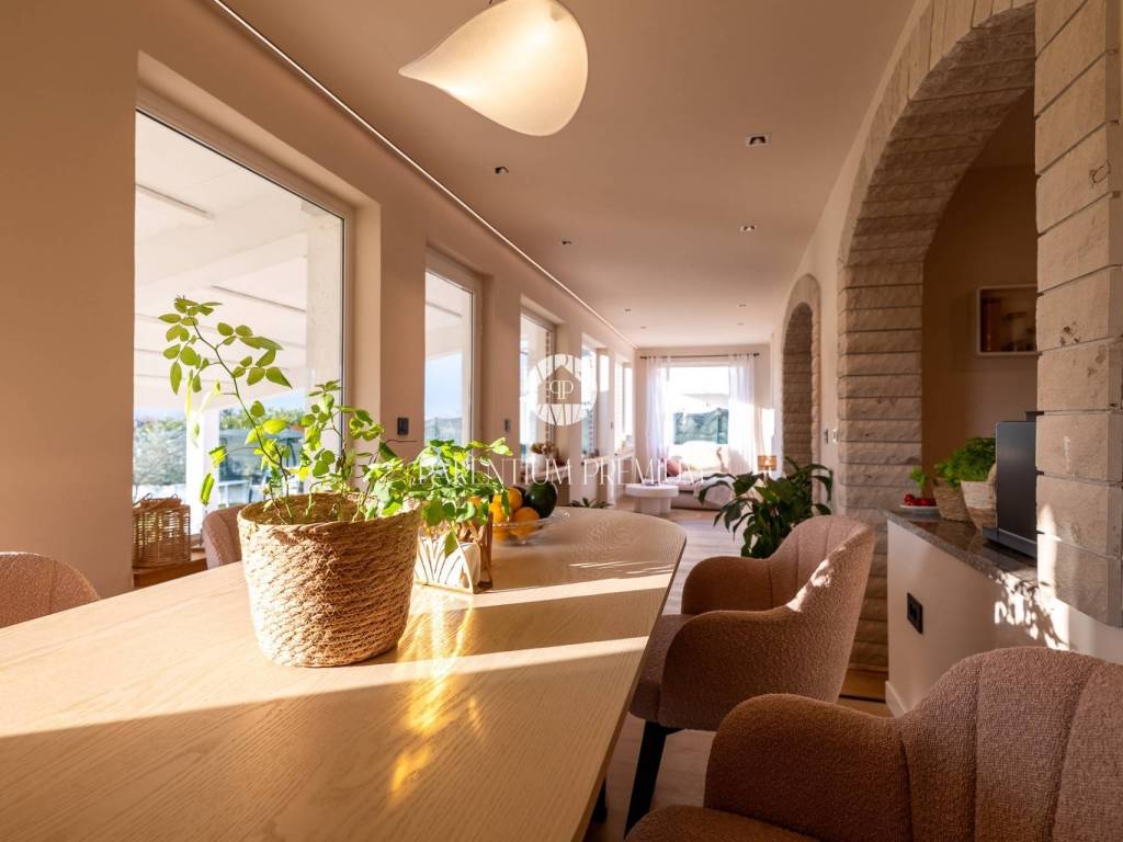 The house is situated on a spacious plot of approx. 3,300 m, which is entirely within the building zone, providing exceptional potential for further development or additional construction. The landscaped garden features 24 olive trees, enhancing the authentic Mediterranean atmosphere.