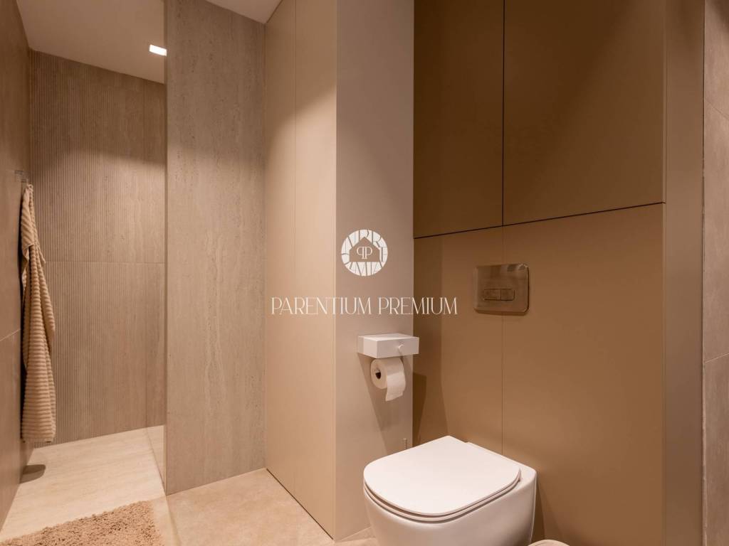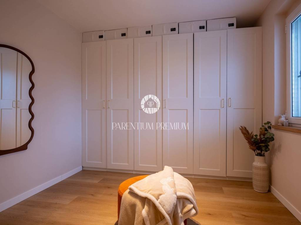 The ground floor is equipped with electric underfloor heating, new Samsung Wind-Free air-conditioning units, a modern kitchen with built-in appliances, a designer bathroom with Ideal Standard sanitary ware, high-quality CLAP! 3D vinyl flooring, exclusive ceramic tiles, and additional storage rooms.