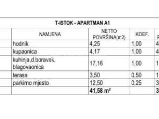 In a quiet part of Brodarica, just 130 meters from the sea, this functional one-bedroom apartment is located on the ground floor of a modern new residential building. The apartment consists of an entrance hall, a bathroom, and an open-plan kitchen, dining area and living room with access to a terrace. A private parking space belongs to the apartment. The total net area of the apartment is 41.58 m², while the usable area is 30.46 m².
