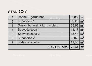 Квартира С27, площадью 73,64 м2, расположена в здании С.