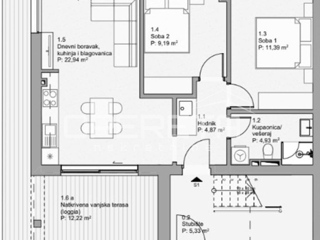 FOR SALE, NEWLY BUILT APARTMENT, ISLAND OF PAG, POVLJANA In an excellent location on the island of Pag in Povljana, an apartment in a new building is for sale. The unfinished phase has been completed and the roof insulation and carpentry are expected to be installed. The apartment consists of two bedrooms, a living room with kitchen and dining room, a bathroom with laundry room and a hallway. The apartment has 53.32 m2 of closed space and 42.68 m2 of terrace (covered and uncovered) as well as access to the garden. The total area of the apartment with calculated coefficients is 82.90 m2. The apartment also has 1 outdoor parking space. The urban villa is 650 m from the sea and each apartment has a sea view on one side and a beautiful view of Velebit on the other. The apartments are equipped with rich and modern equipment. There is a possibility of building an additional storage room for this apartment. More information is available upon request.