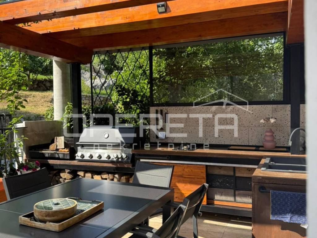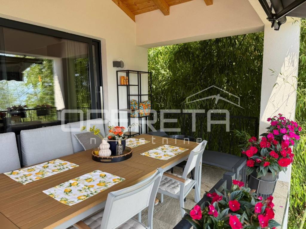 We are pleased to offer a high-quality newly built family house located in the peaceful village of Liganj, above Lovran, just a few minutes drive from the beautiful coastline of the Opatija Riviera.