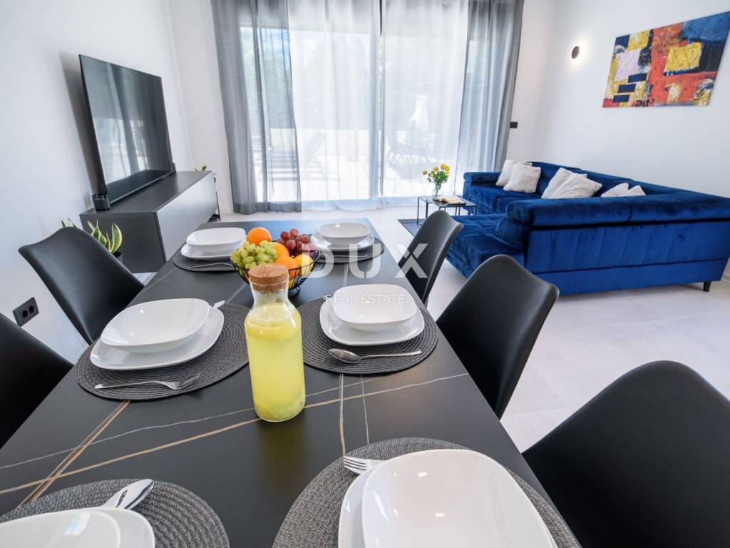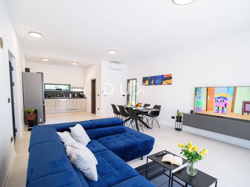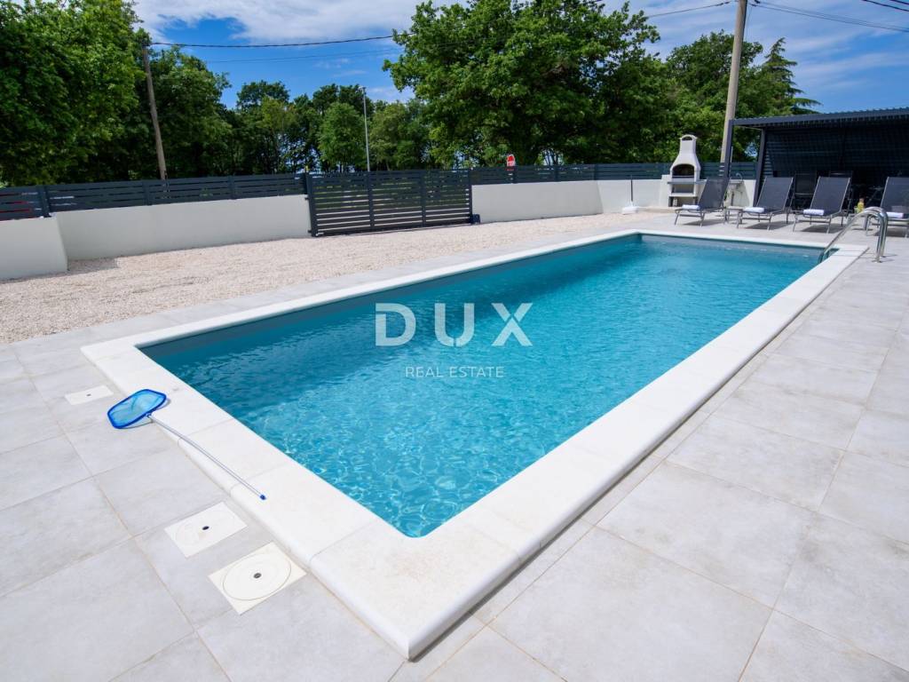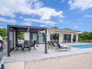 In a quiet and green part of Istria, in the immediate vicinity of Kanfanar, a modern and elegant single-storey house with a swimming pool is for sale, fully furnished and ready to move in or continue as a tourist rental. The property is categorized for rental and already generates proven income and excellent reviews, making it an extremely attractive investment.