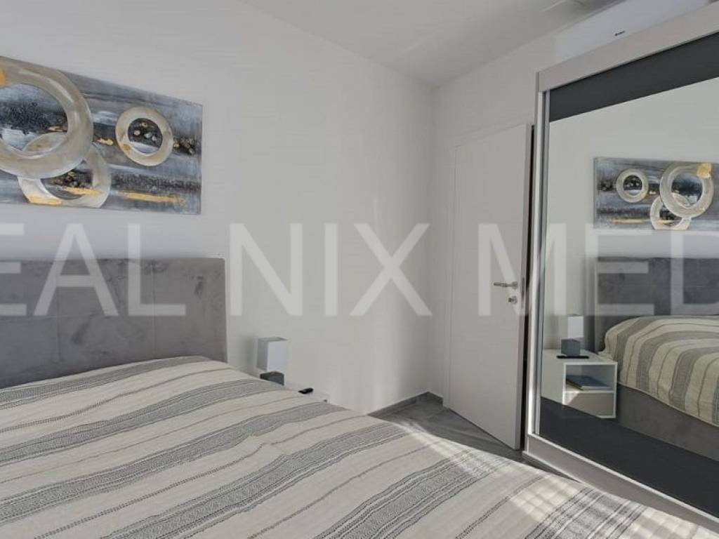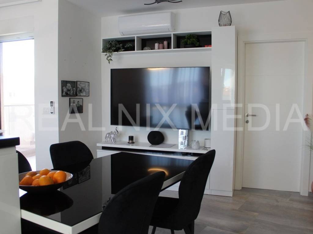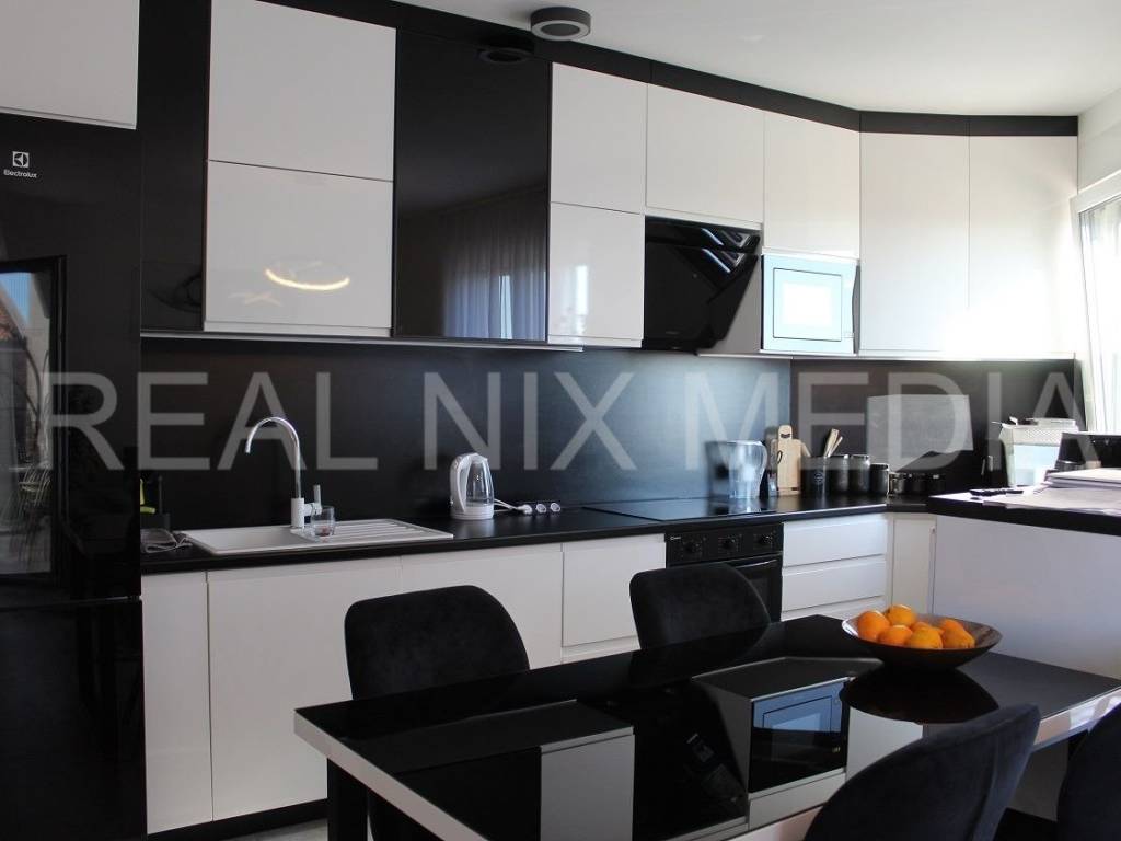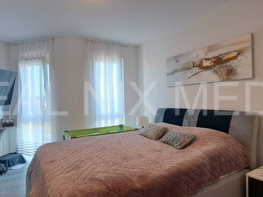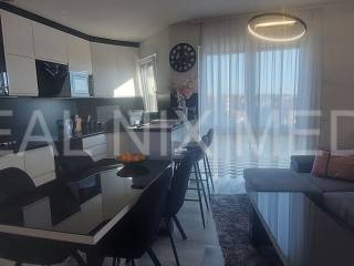 Stan se prodaje kompletno namješten! Klima uređaj u svakoj prostoriji, podno centralno grijanje u cijelom stanu, PVC stolarija, protuprovalna vrata, portafon... Stan sačinjava predsoblje, kuhinja, blagovaonice i dnevni boraka sa izlazom na balkon, dvije spavaće sobe, kupaonica. Stanu pripadaju tri vanjska parkirna mjesta! Na krovnoj terasi provedene su instalacije struje i vode.