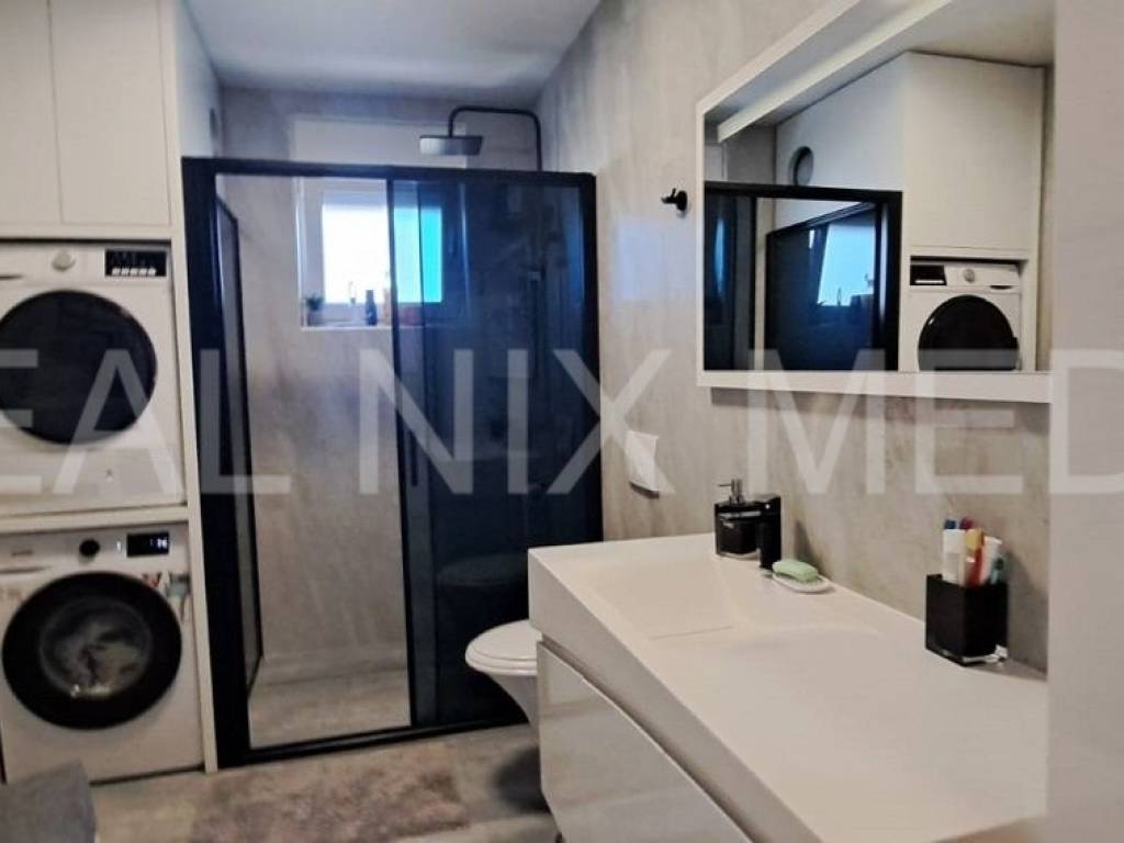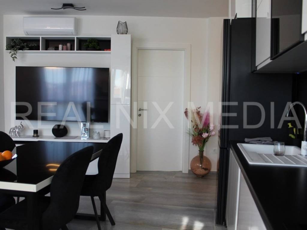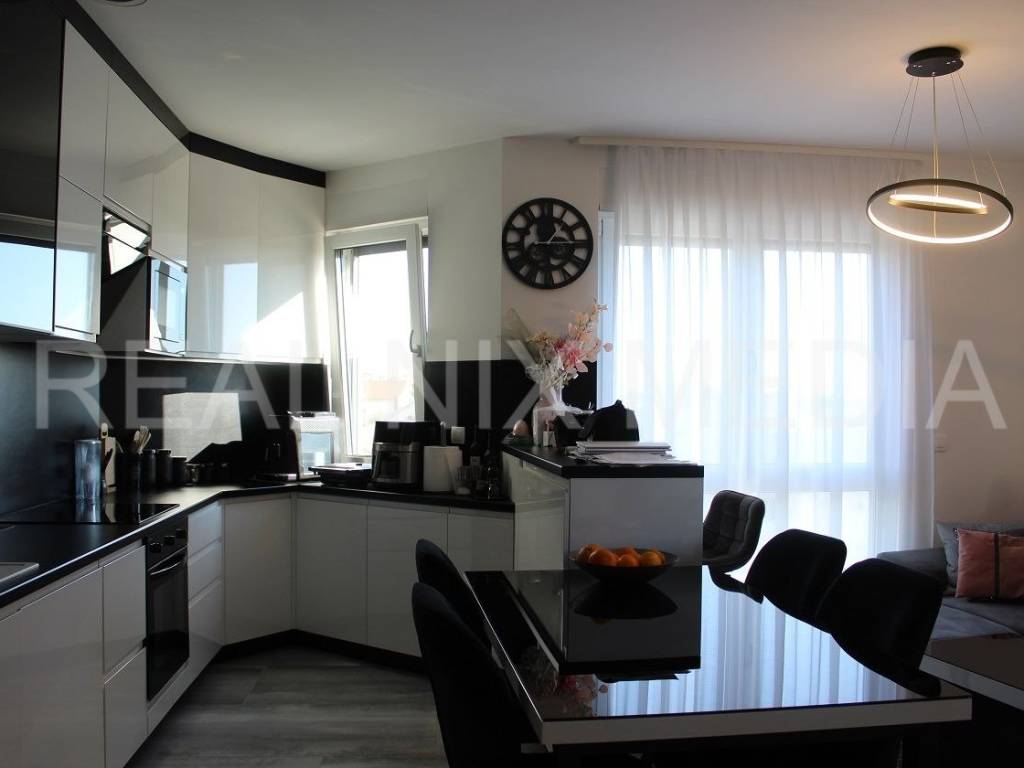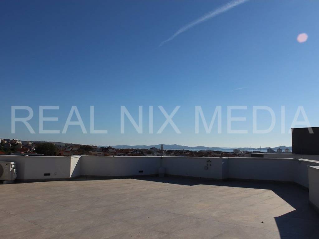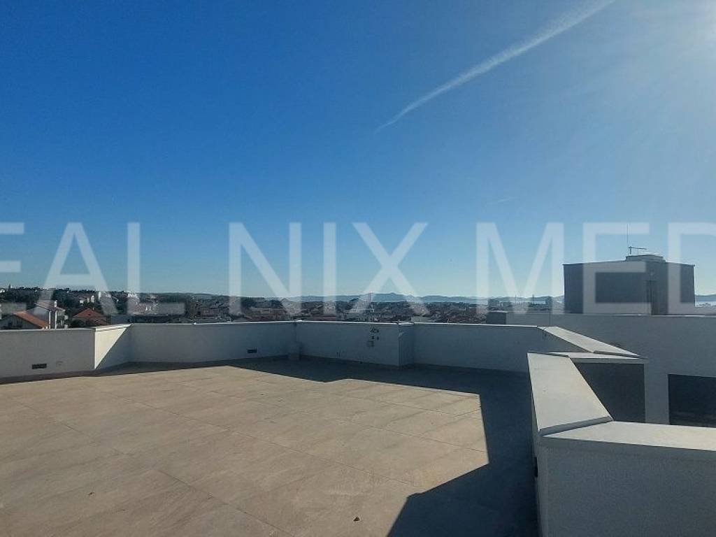 ODMAH USELJIVO! Moderno uređen stan na drugom katu stambene zgrade sa prostranom krovnom terasom sa koje se pruža pogled na more! Stan je osunčan, svijetao, jugoistočno orijentiran!