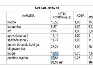 Located on the second floor of a modern new development in Brodarica, this two-bedroom apartment is only 130 meters from the sea. The apartment consists of an entrance hallway, a bathroom, an additional guest toilet, two bedrooms, and a living room with kitchen and dining area, with access to a loggia. One parking space belongs to the apartment. The total net area is 98.53 m², while the usable area is 86.62 m².