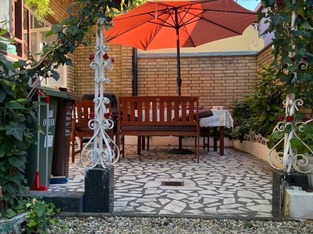 Malo, ali uređeno dvorište stvoreno je za obiteljsko druženje i odmaranje poslije napornog dana, a želite li otići do trgavačkog centra nema potrebe da razmišljate o parkingu i gradskoj gužvi jer se kuća nalazi svega nekoliko minuta hoda od trgovačkog centra.
