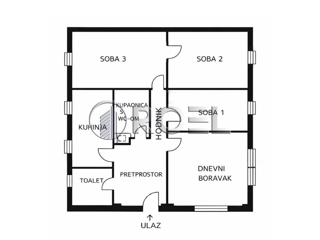 The apartment consists of an entrance hall, hallway, three bedrooms, living room, separate kitchen, bathroom with toilet and an additional separate toilet. Two bedrooms and the living room are oriented to the south, which provides the space with plenty of natural light, while one bedroom, kitchen and toilet are oriented to the north.