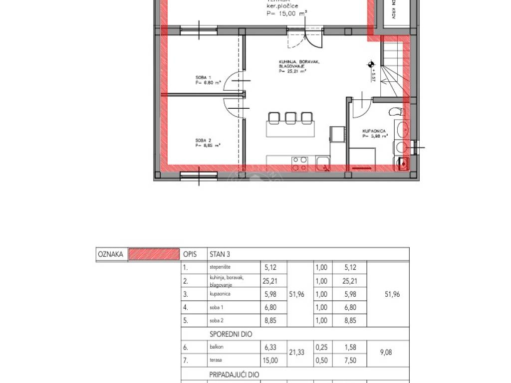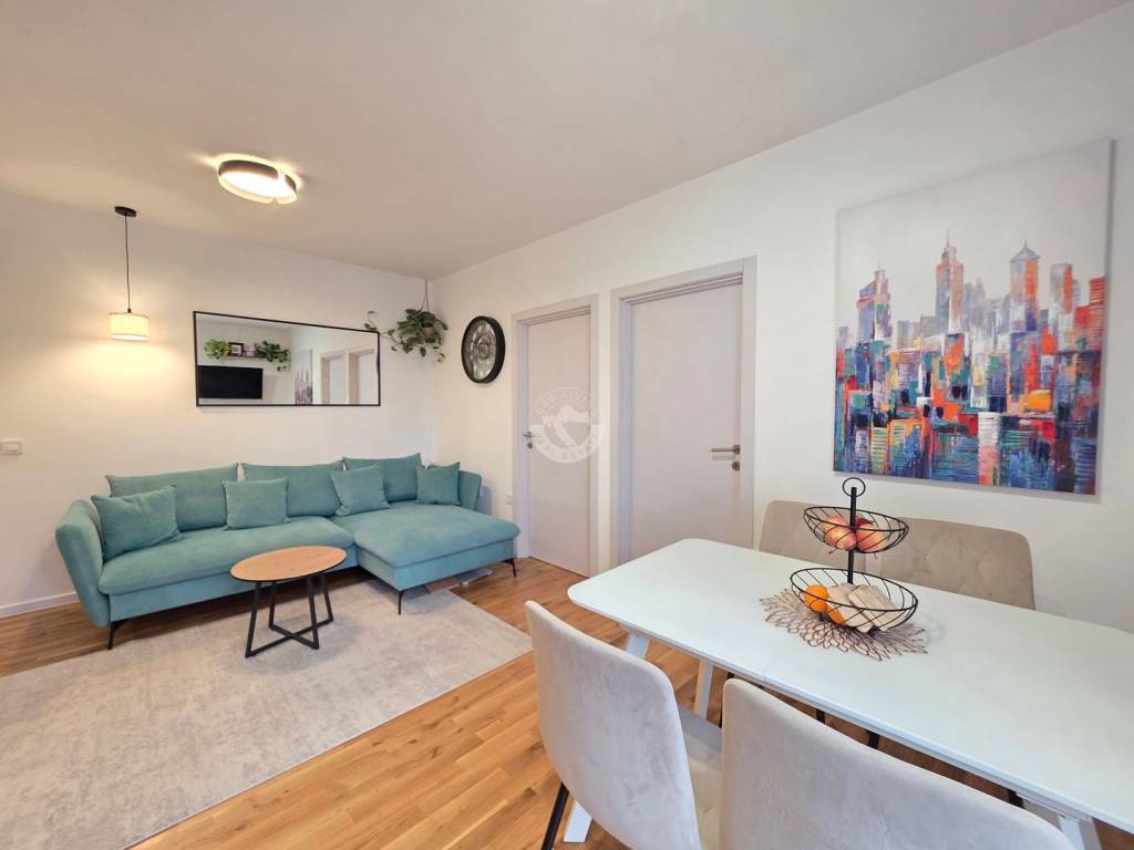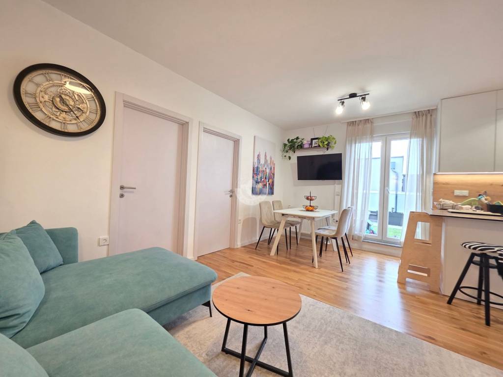 The apartment is located in a quiet and pleasant micro-location, ideal for family living. Nearby are schools, kindergartens, sports fields, and shops, and the transport connections are excellent – close to the train station and bus line 215 towards Kvatrić.