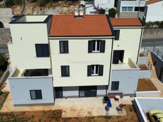 First apartment: The two-story apartment in a residential building consists of an entrance hall, toilet, living room, kitchen with dining room, pantry and covered terrace, on the first floor, and a staircase, hallway, storage room, two bedrooms, two bathrooms and uncovered terrace, on the second floor of the building, with a total area of 110.70 m2 (NAV 96.89 m2), and the following accessories are also part of the apartment: storage room in an auxiliary building, with an area of 8.80 m2 (NAV 6.60 m2), parking space on the flat accessible roof of the auxiliary building, with an area of 25.80 m2 (NAV 6.45 m2), parking space with an area of 20.00 m2 (NAV 5.00 m2) and a home garden with an area of 15.00 m2 (NAV 1.05 m2), with a total area of 180.30 m2 (115.99 m2).
