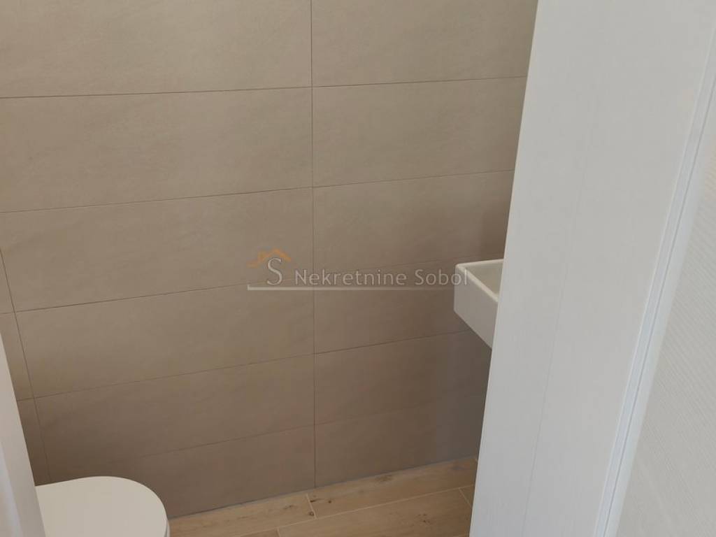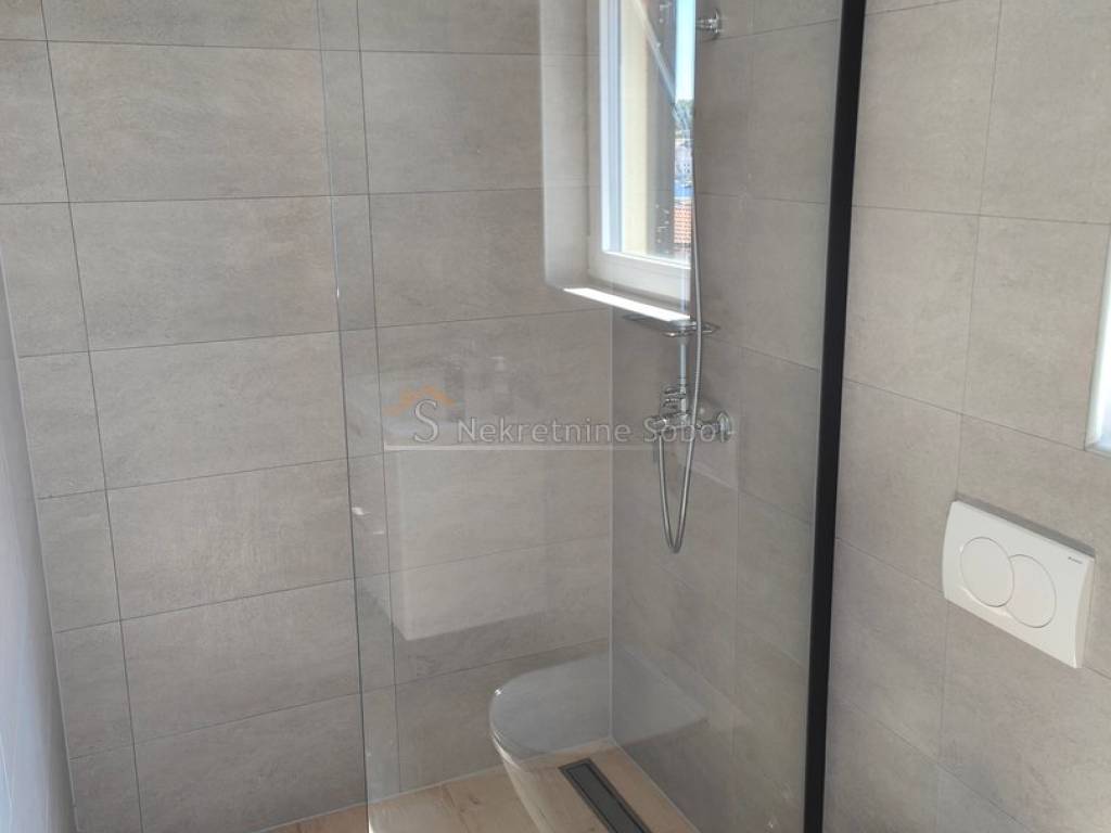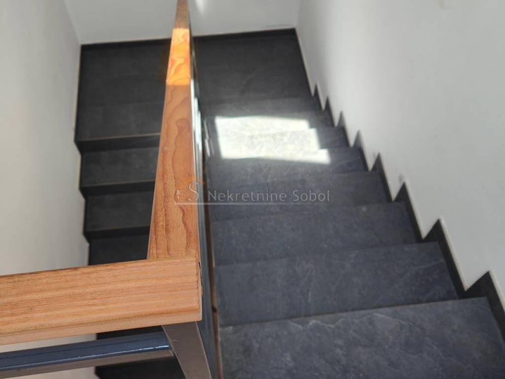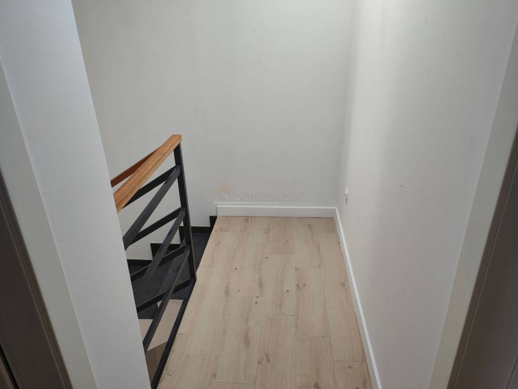 Second apartment: A two-story apartment in a residential building consisting of an entrance hall, toilet, living room, kitchen with dining room, pantry and uncovered terrace, on the first floor, and a staircase, hallway, two bedrooms and two bathrooms, on the second floor of the building, with a total area of 99.45 m2 (NAV 87.05 m2), and an integral part of the apartment are the following: a storage room in an auxiliary building, with an area of 8.70 m2 (NAV 6.53 m2), a parking space, with an area of 15.00 m2 (NAV 3.75 m2) and a home garden, with an area of 28.00 m2 (NAV 1.96 m2), with a total area of 151.15 m2 (99.29 m2).