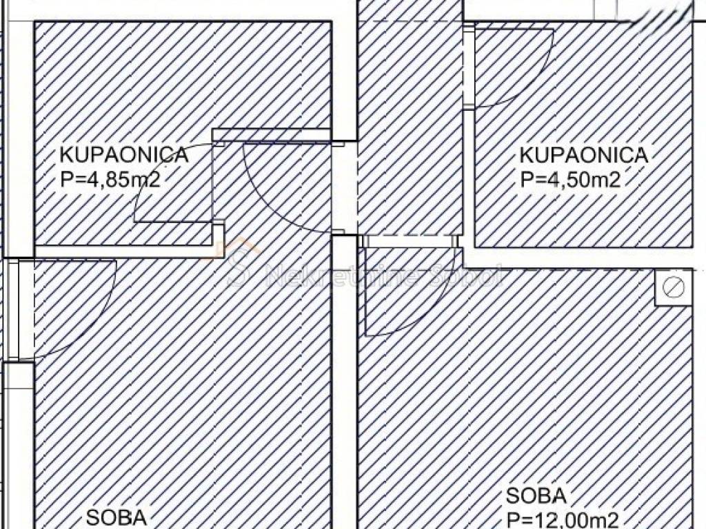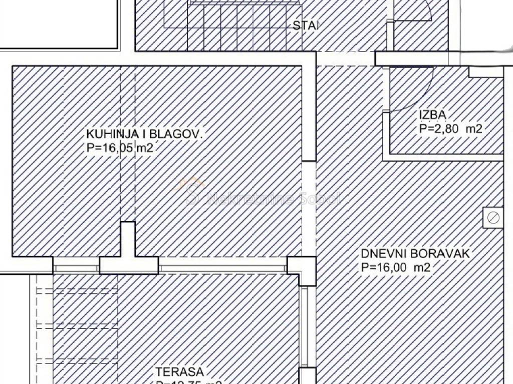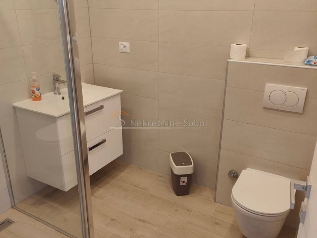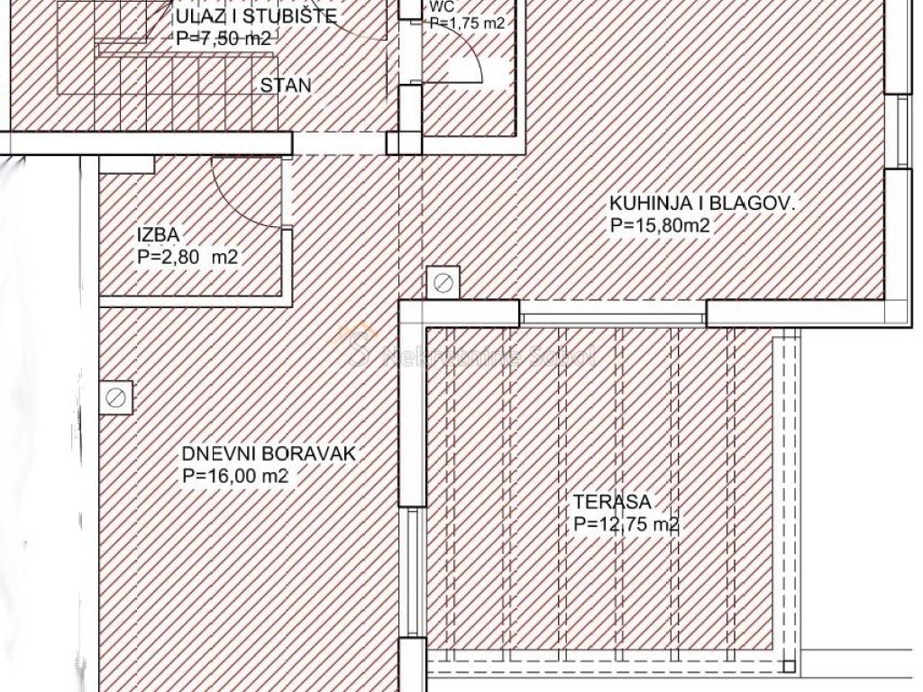 Second apartment: A two-story apartment in a residential building consisting of an entrance hall, toilet, living room, kitchen with dining room, pantry and uncovered terrace, on the first floor, and a staircase, hallway, two bedrooms and two bathrooms, on the second floor of the building, with a total area of 99.45 m2 (NAV 87.05 m2), and an integral part of the apartment are the following: a storage room in an auxiliary building, with an area of 8.70 m2 (NAV 6.53 m2), a parking space, with an area of 15.00 m2 (NAV 3.75 m2) and a home garden, with an area of 28.00 m2 (NAV 1.96 m2), with a total area of 151.15 m2 (99.29 m2).