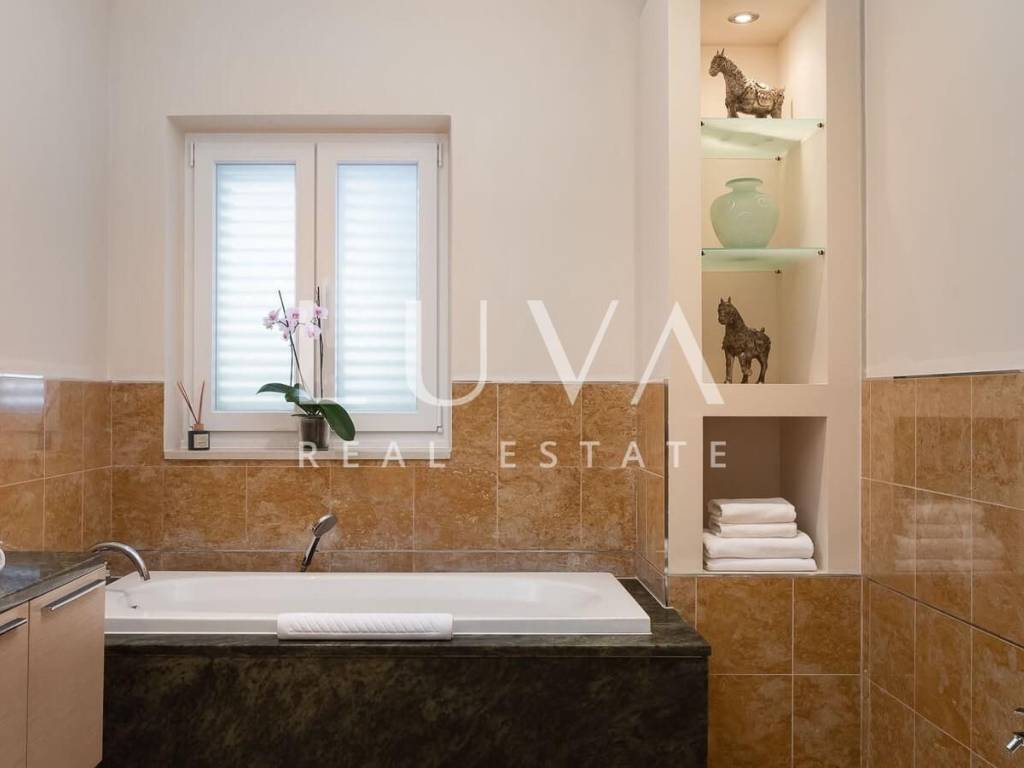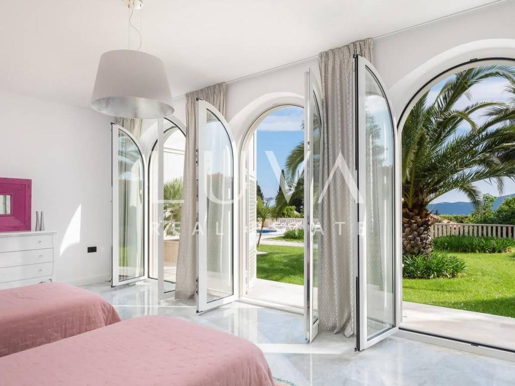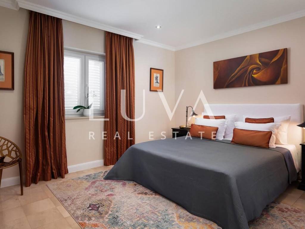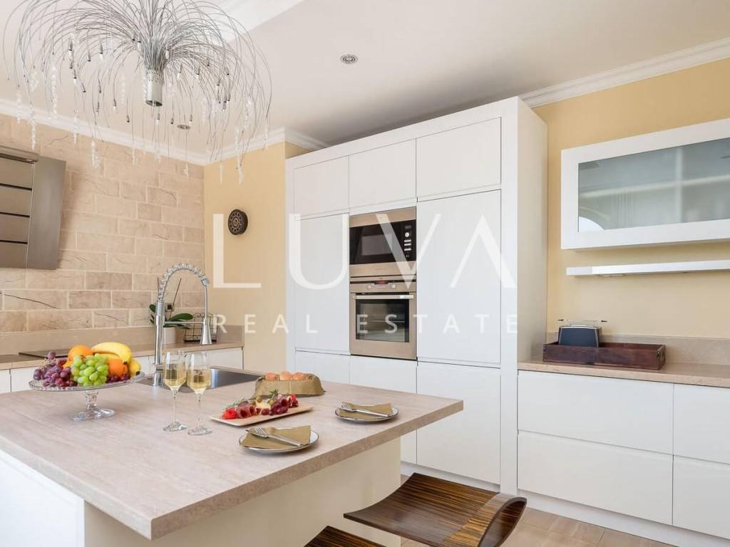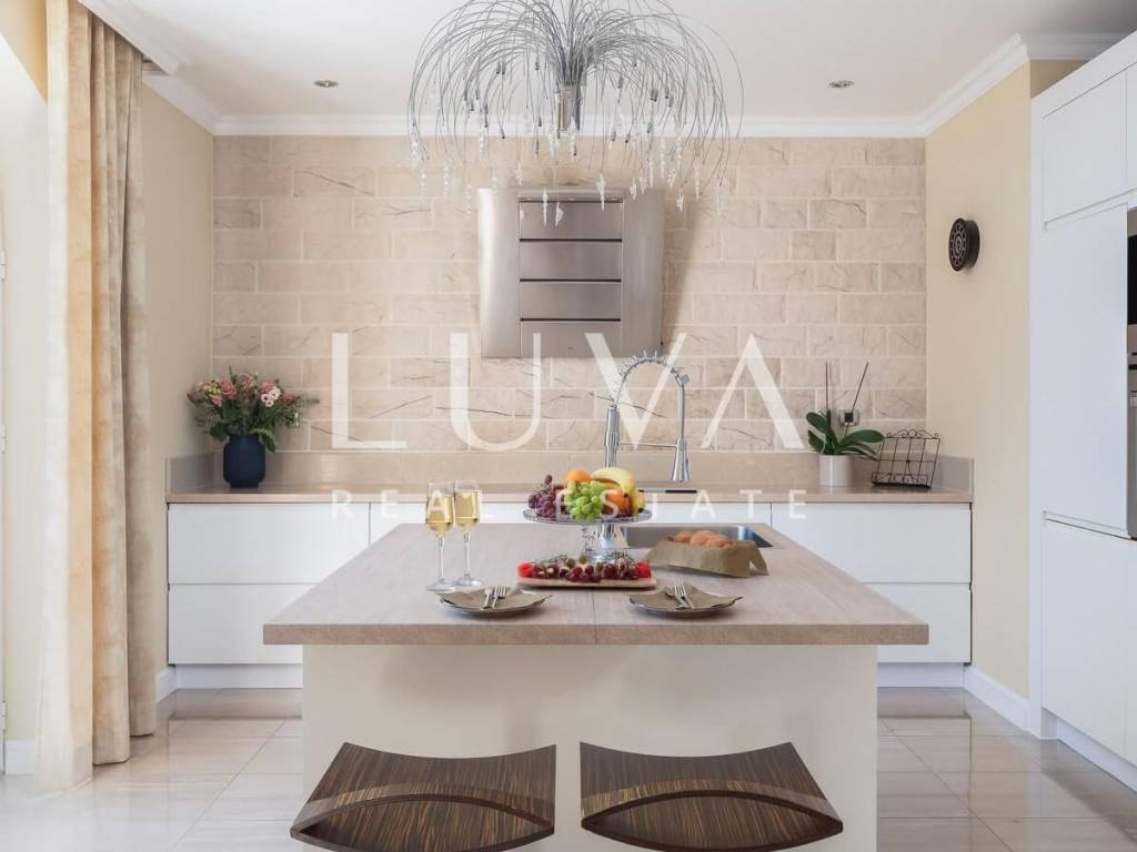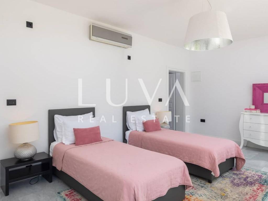 The villa extends over 300 m² of living space and is thoughtfully arranged to provide maximum comfort and functionality. The property features six spacious bedrooms and five bathrooms, allowing comfortable accommodation for a larger number of residents without compromising privacy. The sleeping quarters are separated from the main living areas, ensuring that daily activities and relaxation can take place independently and without disturbance.