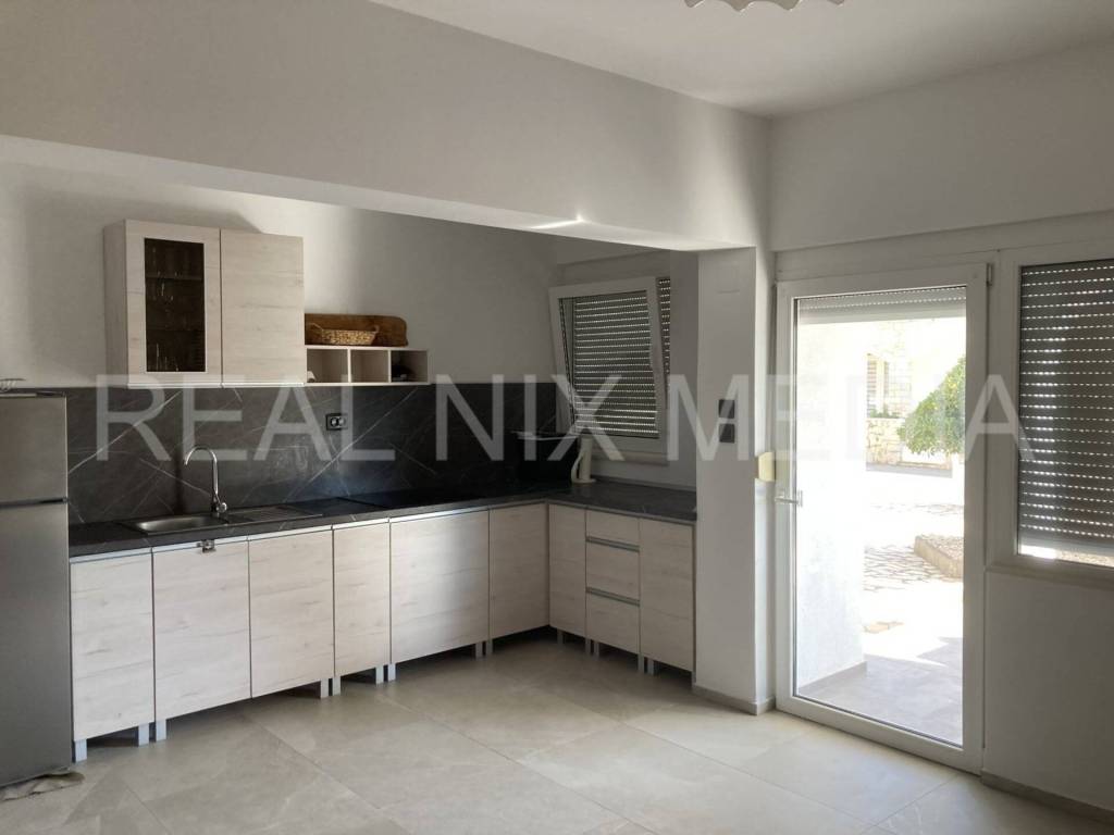 Prizemlje: prostrani apartman, kuhinja s blagovaonicom, kupaonica, dvije spavaće sobe velika terasa s ljetnom kuhinjom i vanjskim tušem, garaža, unutarnje stepenice