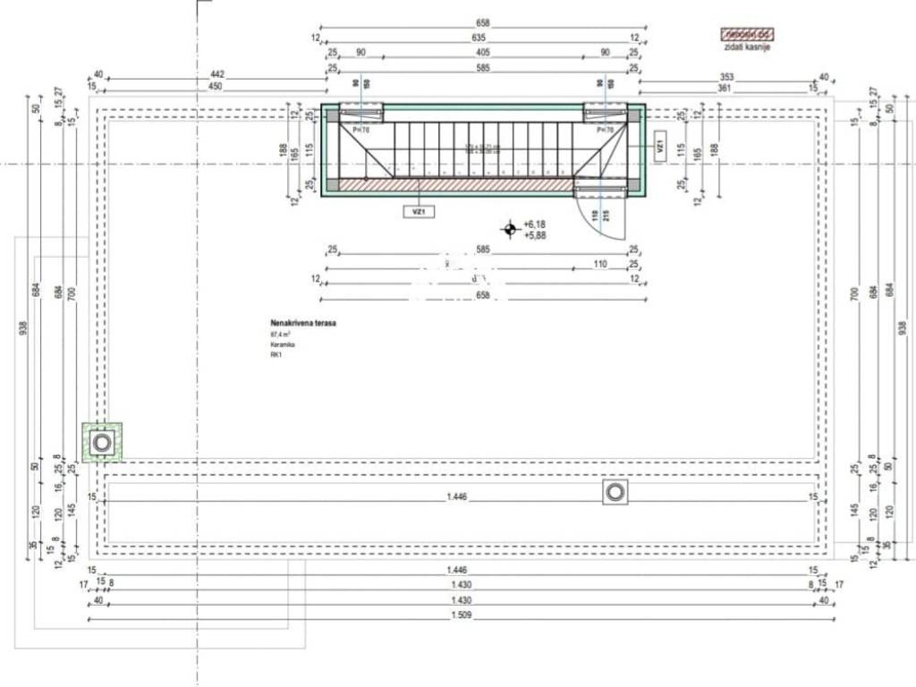 Rooftop terrace: planned space for a jacuzzi and sauna, with plenty of room for a lounge and sunbathing area overlooking the sea.