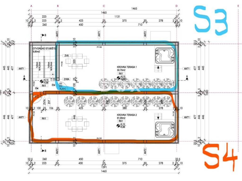 There are 4 apartments in the building, 2 on the ground floor and 2 on the first floor. The apartments on the ground floor have a garden and an uncovered terrace overlooking the forest, that is, on land where construction is not allowed, while the apartments on the first floor have a spacious roof terrace with a view of the sea.