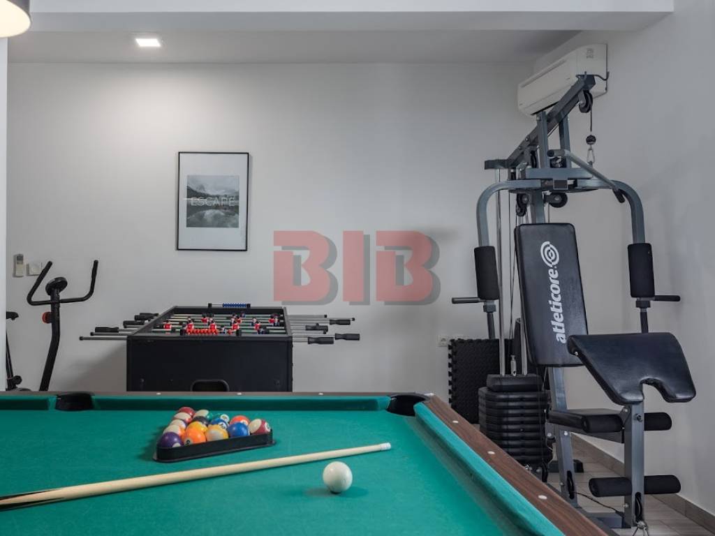 U suterenu se nalazi grijani bazen površine 32m2,sauna,tuš,manja teretana sa igraonicom,spremište,te terasa sa izlazom na sunčalište i dvorište gdje se nalazi roštilj