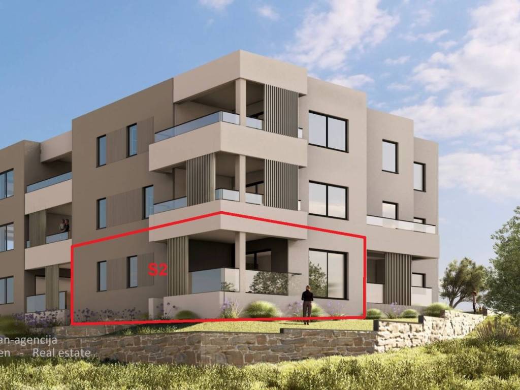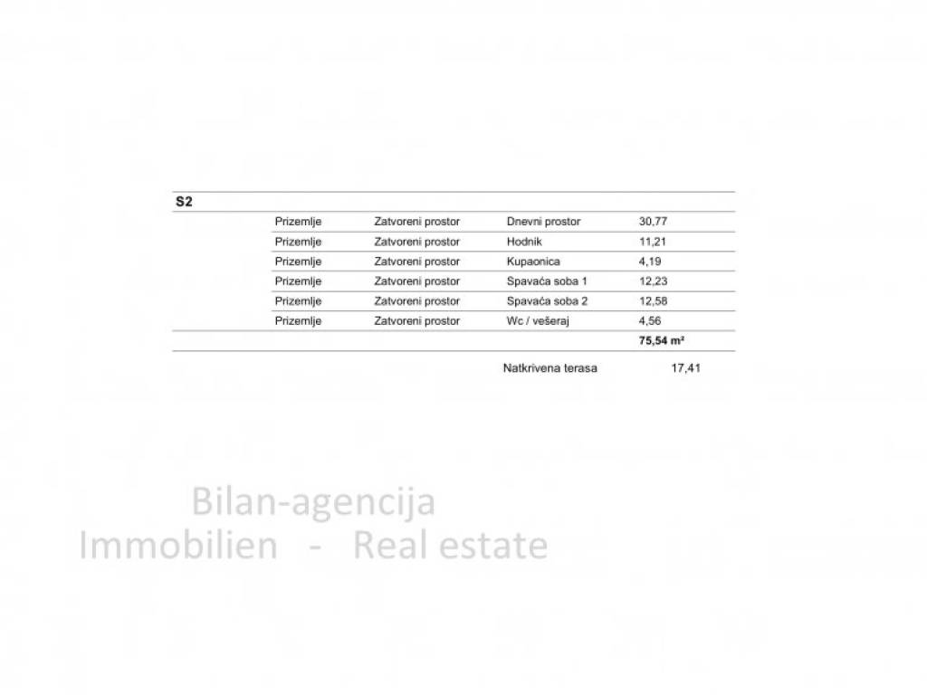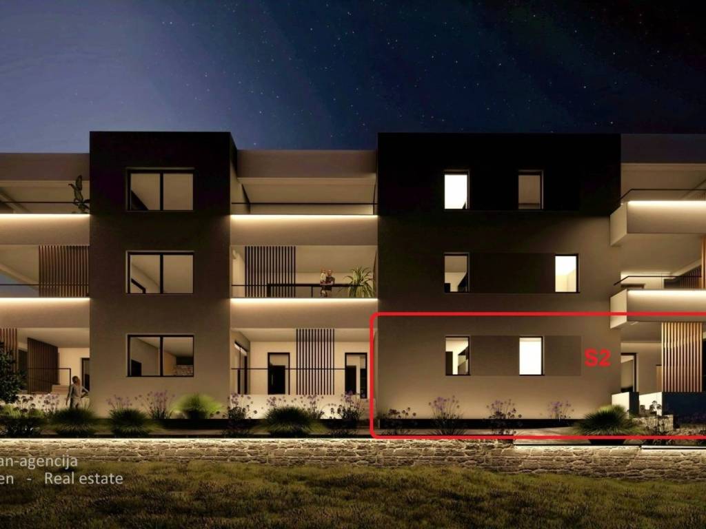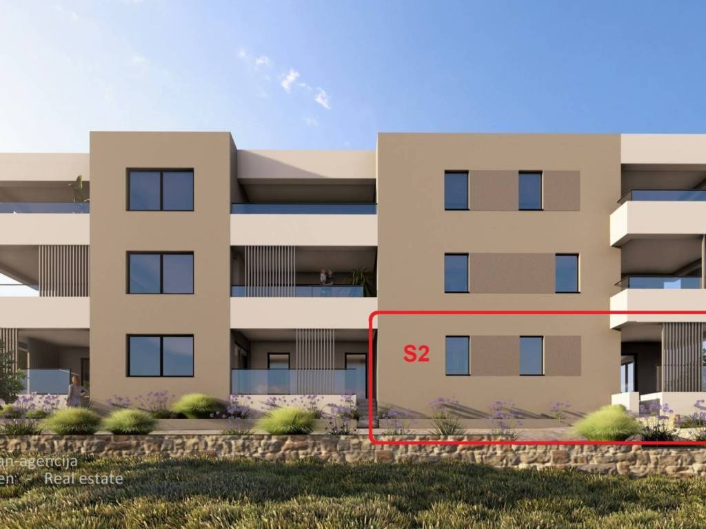 It consists of two bedrooms, kitchen-dining-living room, bathroom, toilet/laundry room, hallway, uncovered terrace. The apartment has a storage room in the basement, one parking space (additional parking space can be purchased) and its own garden.