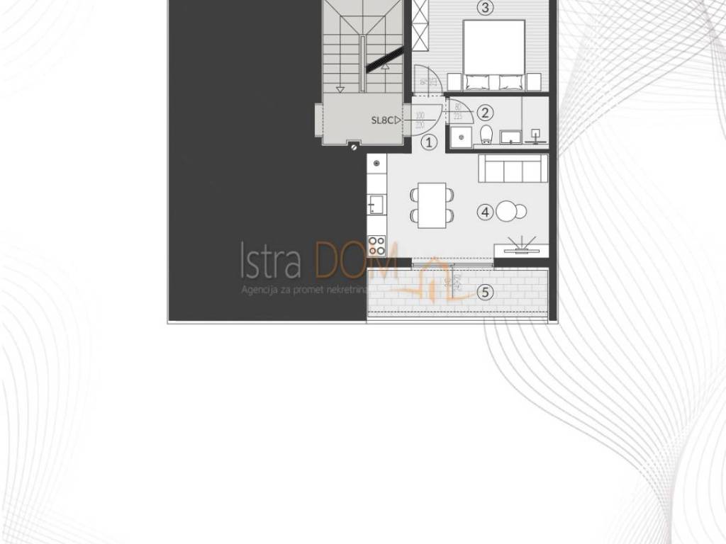 Each residential unit is provided with the required number of parking spaces according to the urban plan of the city of Pula, dimensions 2.50m' x 5.00m'. Parking spaces cannot be changed or omitted from the composition of the residential unit.