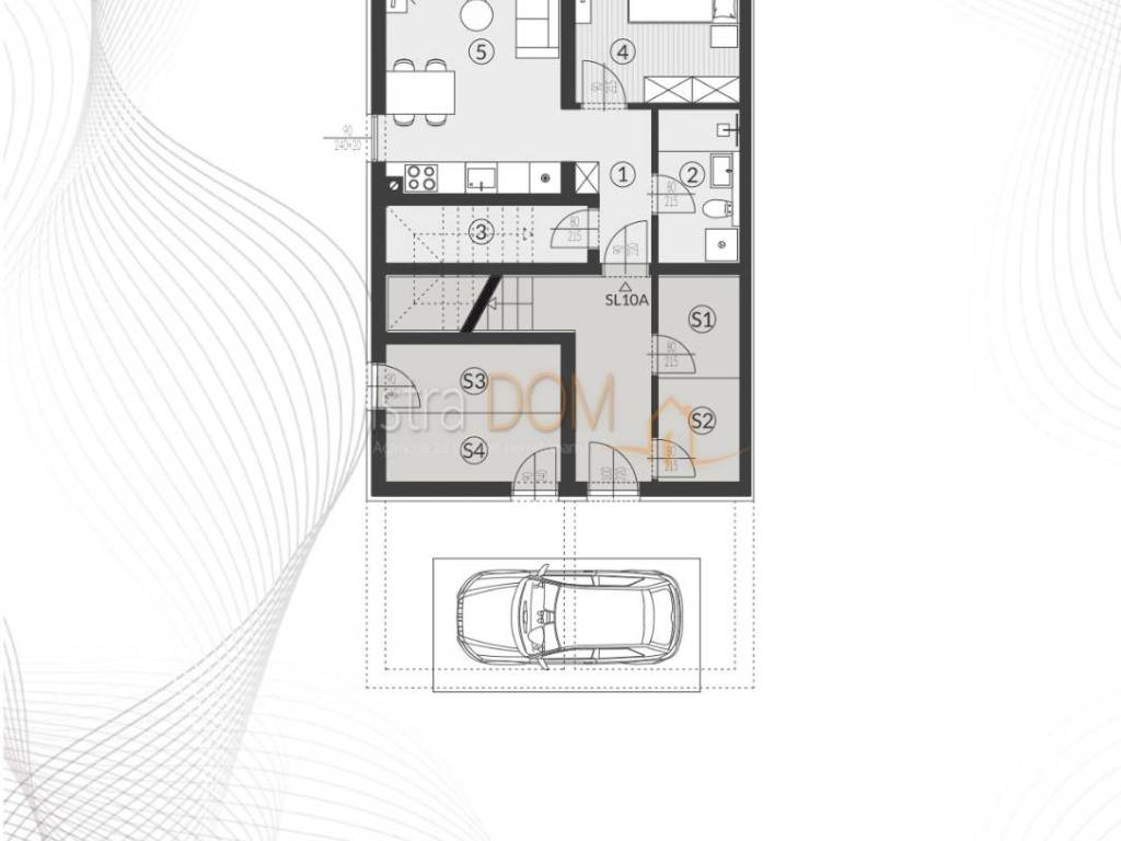 Each residential unit is provided with the required number of parking spaces according to the urban plan of the city of Pula, dimensions 2.50m' x 5.00m'. Parking spaces cannot be changed or omitted from the composition of the residential unit.
