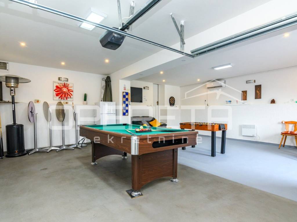 Funkcionalnog tlocrta, svaka od njih razvedena je na dvije etaže te ukupno nude 2 "open space" dnevna boravka - svaki s kuhinjom i blagovaonicom, 4 spavaće sobe, igraonicu, 3 kupaonice s wc-om, spremišta, igraonicu, terasu s jacuzzijem, saunu, vanjski roštilj/peka, dječje igralište i osiguran parking za najmanje 10 automobila.