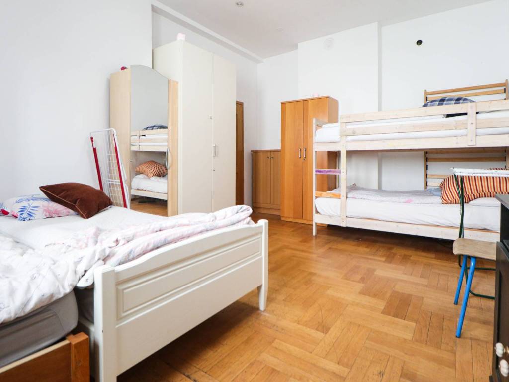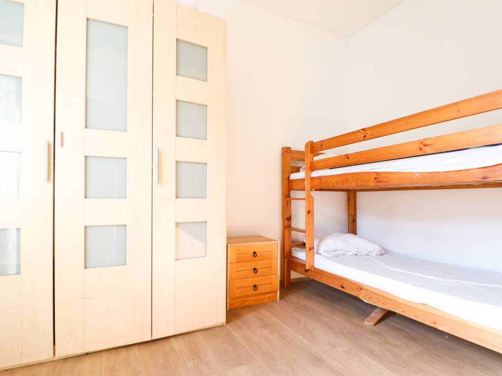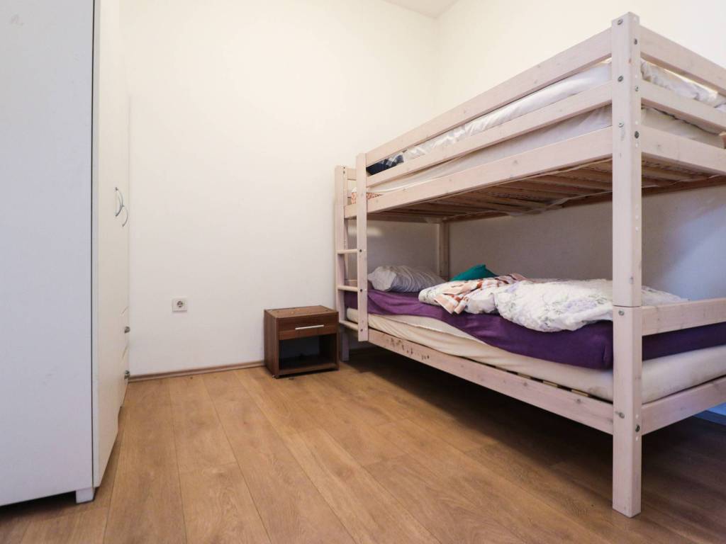 Trenutačno je potpuno namješten za stambenu uporabu te taj namještaj ulazi u cijenu stana. Sadrži deset ležajeva, velike ormare, noćne ormariće, blagovaonski stol, kauč, pećnicu, kuhinjsku ploču, hladnjak sa zamrzivačem, PVC stolariju, video portafon i sl.
