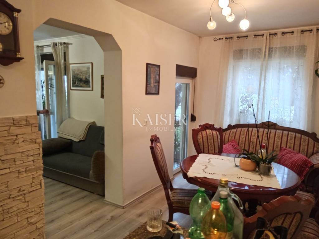 Kaiser Immobilien presents you a renovated apartment on the ground floor of an apartment building in a good location in Buje. It consists of a kitchen with a dining area, a living room, a bedroom (possibility of separating another bedroom, or restoring it to its original state), a bathroom, a beautiful, spacious terrace and a large storage room in the basement.