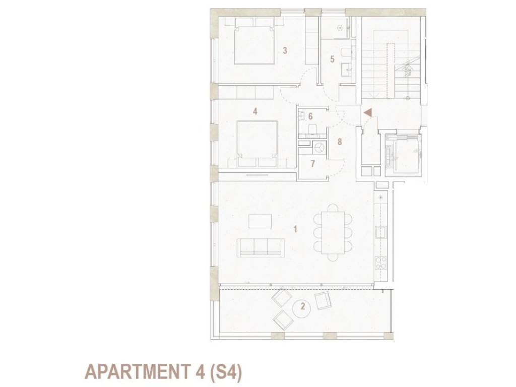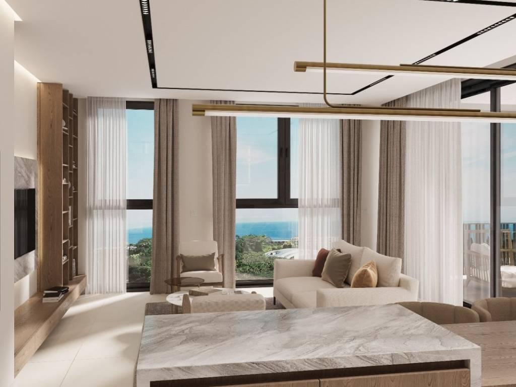 Квартира общей жилой площадью 75 м состоит из прихожей, практичной прачечной, отдельного гостевого туалета, ванной комнаты, двух уютных спален и современного открытого пространства, объединяющего кухню, столовую и гостиную. Гостиная выходит на просторную лоджию площадью 15 м, идеально подходящую для отдыха и времяпрепровождения на свежем воздухе, с прекрасным видом на море.