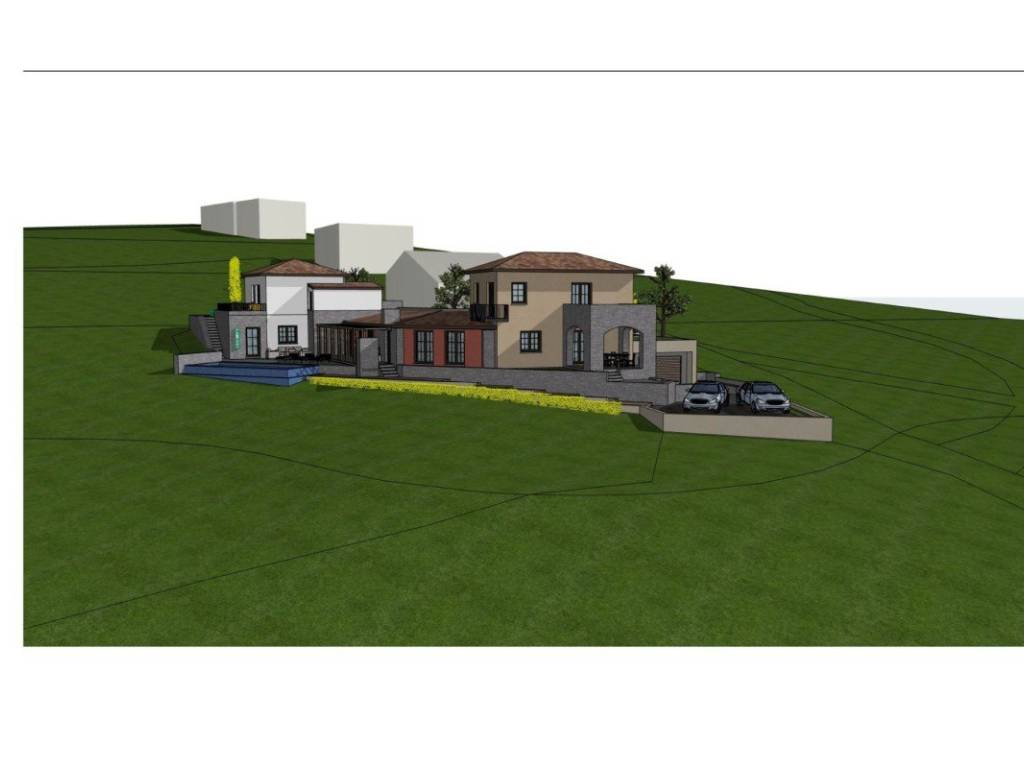 Предварительный проект предусматривает строительство современной виллы площадью до 300 м с бассейном и достаточным пространством для дополнительных построек. Участок расчищен, выровнен и готов к строительству. Подъезд осуществляется непосредственно с асфальтированной местной дороги без движения транспорта. На участке есть электричество и вода.
